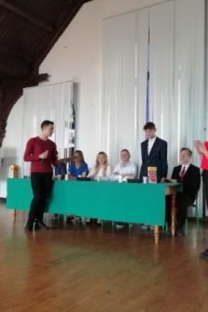 Ostatnią, najbardziej emocjonującą częścią debaty były pytania od publiczności. Zadano ich sporo, niekiedy wywoływały żywą dyskusję, ponieważ dotyczyły spraw związanych z potrzebami młodzieży. Zainteresowanie oraz żywiołowy przebieg debaty świadczą o zasadności takich przedsięwzięć.