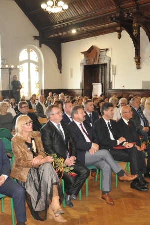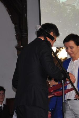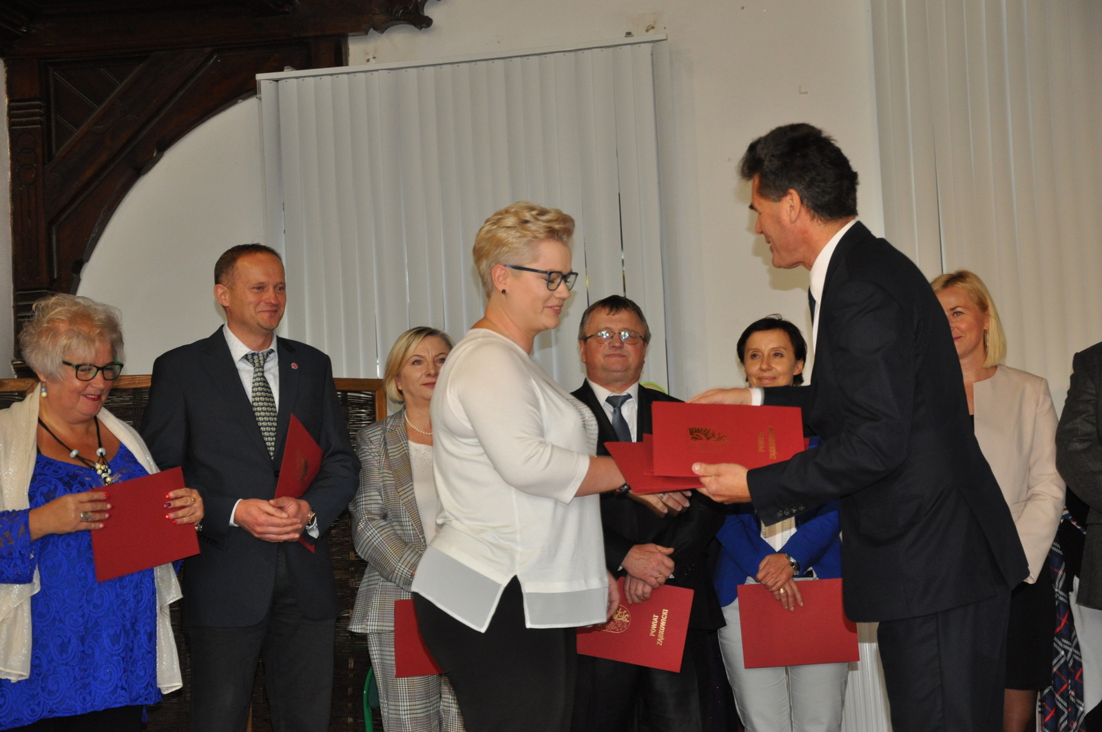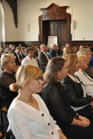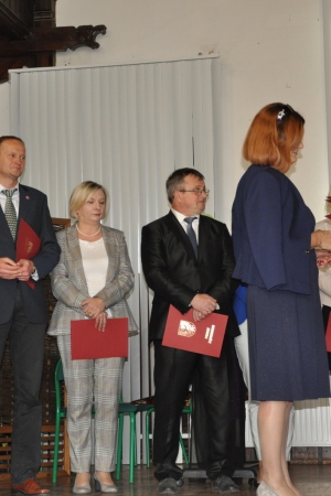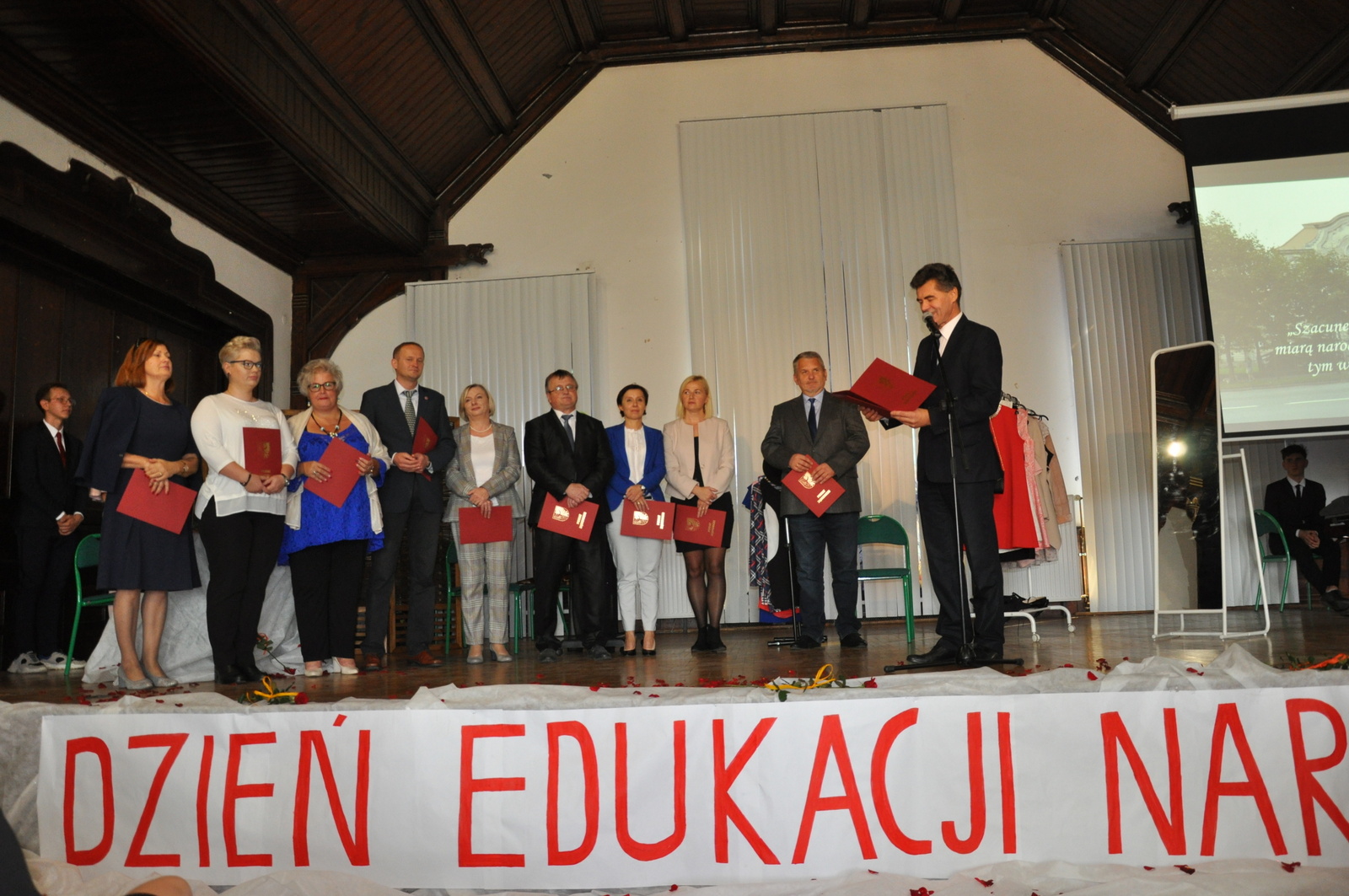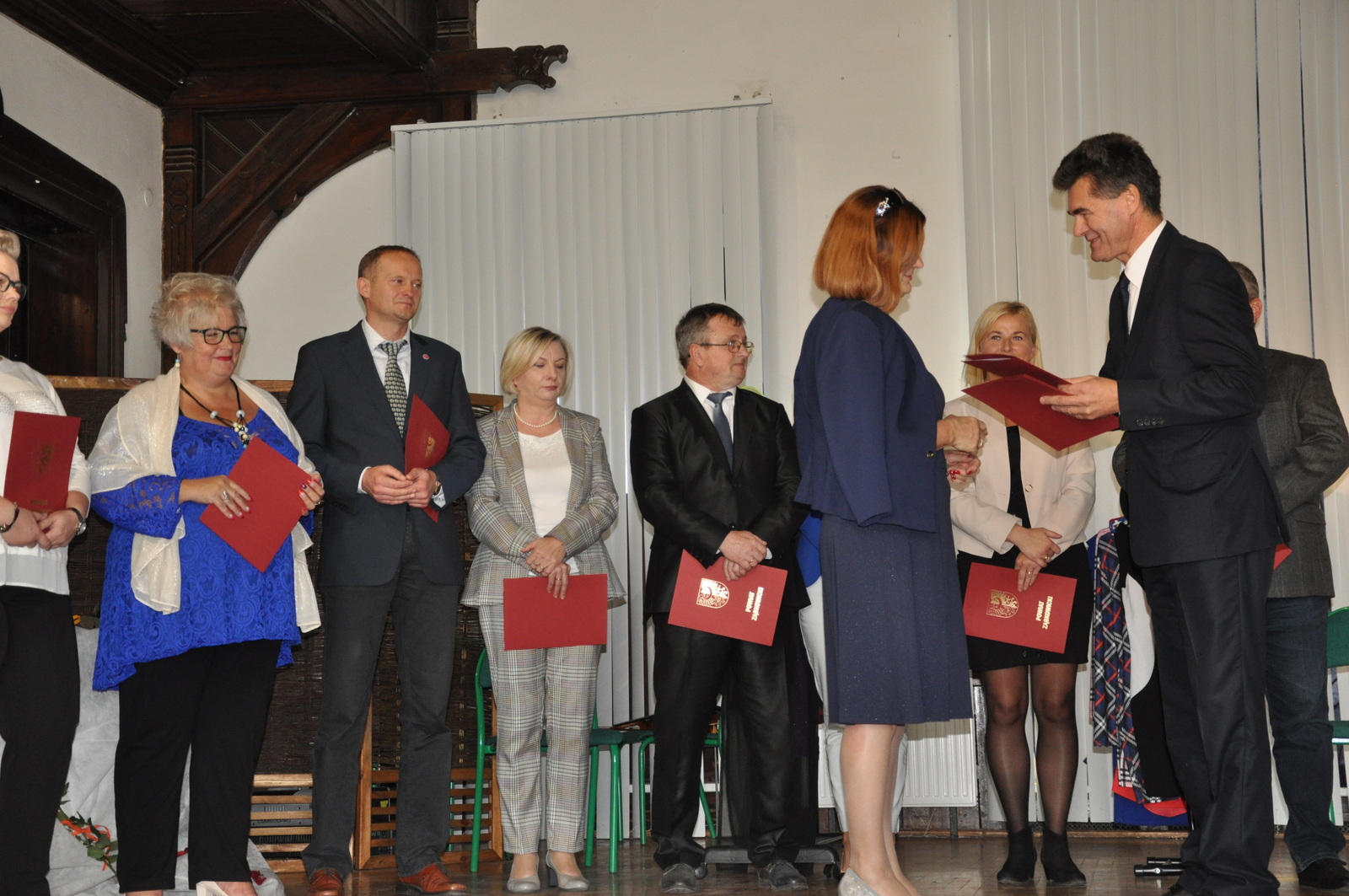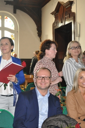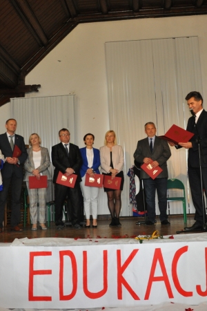 Pan Ryszard Pawłowski podziękował nauczycielom za kreatywność i okazywaną uczniom życzliwość, pracownikom administracji i obsługi za wsparcie, a władzom powiatowym za troskę o właściwe funkcjonowanie placówek oświatowych. Z kolei Pan Starosta przytoczył słowa Konfucjusza: „Kto nabytą wiedzę pielęgnuje, a nową bez ustanku zdobywa, ten może być nauczycielem innych”. Pan Roman Fester zwrócił uwagę na takie cechy nauczycieli jak odpowiedzialność, zaangażowanie w swoją pracę, oddanie wychowankom, dostosowanie metod nauczania do dynamiki zmieniającego się świata i wrażliwości młodych ludzi.