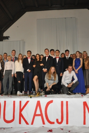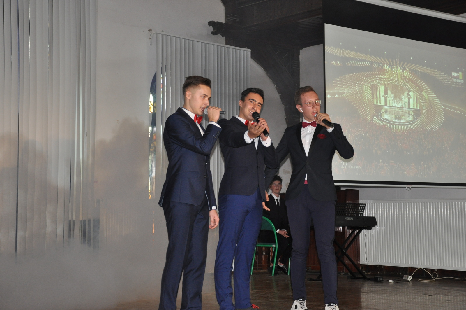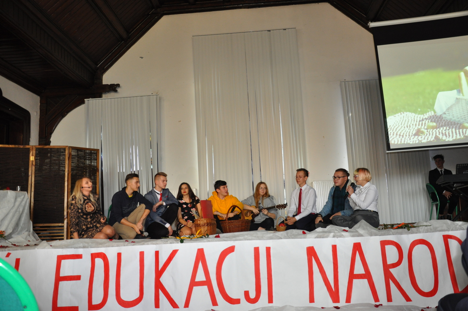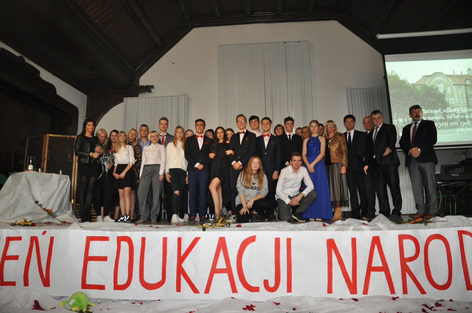 Kolejną częścią uroczystości było wręczenie nagród Starosty wyróżniającym się w pracy dyrektorom i nauczycielom. Na program artystyczny, przygotowany przez młodzież pod kierunkiem nauczycieli: P. Agnieszki Chłopaś, P. Julity Kasprowicz i P. Anny Magnowskiej, złożyła się inscenizacja spotkania po latach absolwentów szkoły na Wrocławskiej, wspominających z rozrzewnieniem lata szkolne i dziękujących pedagogom za ich życiową mądrość, cierpliwe i wytrwałe przekazywanie wiedzy oraz okazane serce. Nauczyciele zostali przedstawieni jako ludzie z pasją, inspirujący wychowanków do stania się tymi, kim mogą i pragną być. Wspominani opiekunowie włożyli wiele wysiłku, by rozniecić w wychowankach aspiracje i nauczyć ich korzystać z mądrości patrona szkoły i ludzi, którzy ją tworzyli. Walorem inscenizacji była różnorodność środków wyrazu, wyrazista gra szkolnych artystów, ciekawy pokaz multimedialny, wykonane na żywo piosenki i utwory instrumentalne, a szczególnie zamykający przedstawienie występ włoskich tenorów z zespołu „Il volo”.