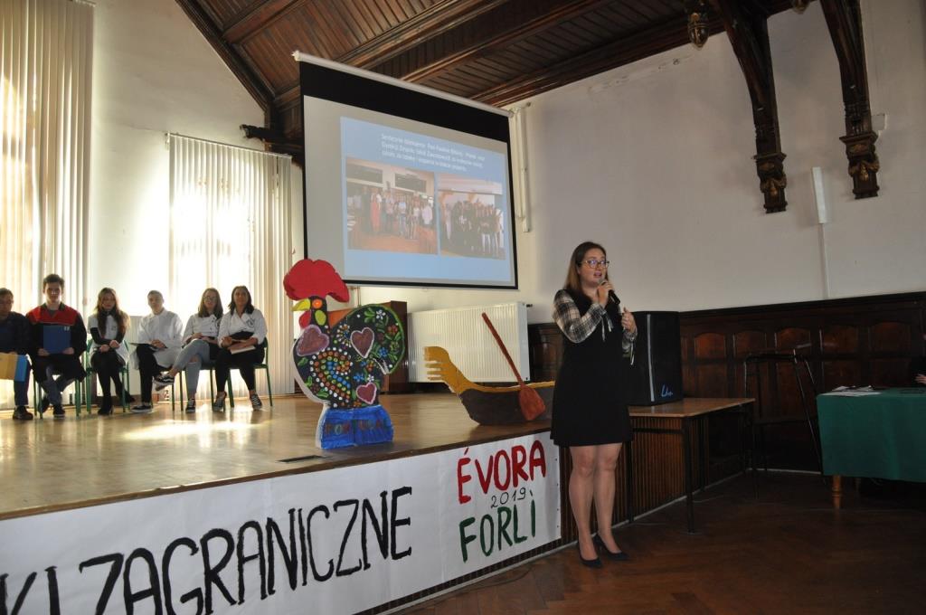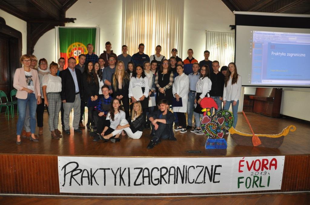 1 października 2019 r. w Zespole Szkół Zawodowych w Ząbkowicach Śl. odbyło się uroczyste podsumowanie Projektu „Bliżej Europy VI- praktyki zagraniczne szansą na dobrą pracę” w ramach Programu Erasmus+. Projekt finansowany ze środków UE umożliwił 35 uczniom, kształcącym się w zawodach: technik ekonomista, handlowiec, informatyk, żywienia i usług gastronomicznych, pojazdów samochodowych, technik mechanik - operator obrabiarek skrawających CNC oraz technik budownictwa 4- tygodniowe praktyki zawodowe we Włoszech w Forli- dla grupy 18 osób i w portugalskiej Evorze- dla grupy 17 uczniów. Celem konferencji było podsumowanie i upowszechnienie rezultatów Projektu. Młodzież przedstawiła społeczności szkolnej i zaproszonym gościom, w tym Pani Paulinie Bilskiej- Marek- koordynatorce projektu, w formie prezentacji multimedialnej, miejsca, gdzie odbywała staże, omówiła zakres swoich obowiązków, a także podzieliła się wrażeniami z ciekawych wycieczek do Wenecji, Florencji, Bolonii, Lizbony, Monsaraz oraz Comporty. Uczestnicy opowiedzieli o swoich wrażeniach, a także obawach, jakie towarzyszyły im przed wylotem, a które na miejscu okazały się całkowicie bezzasadne.