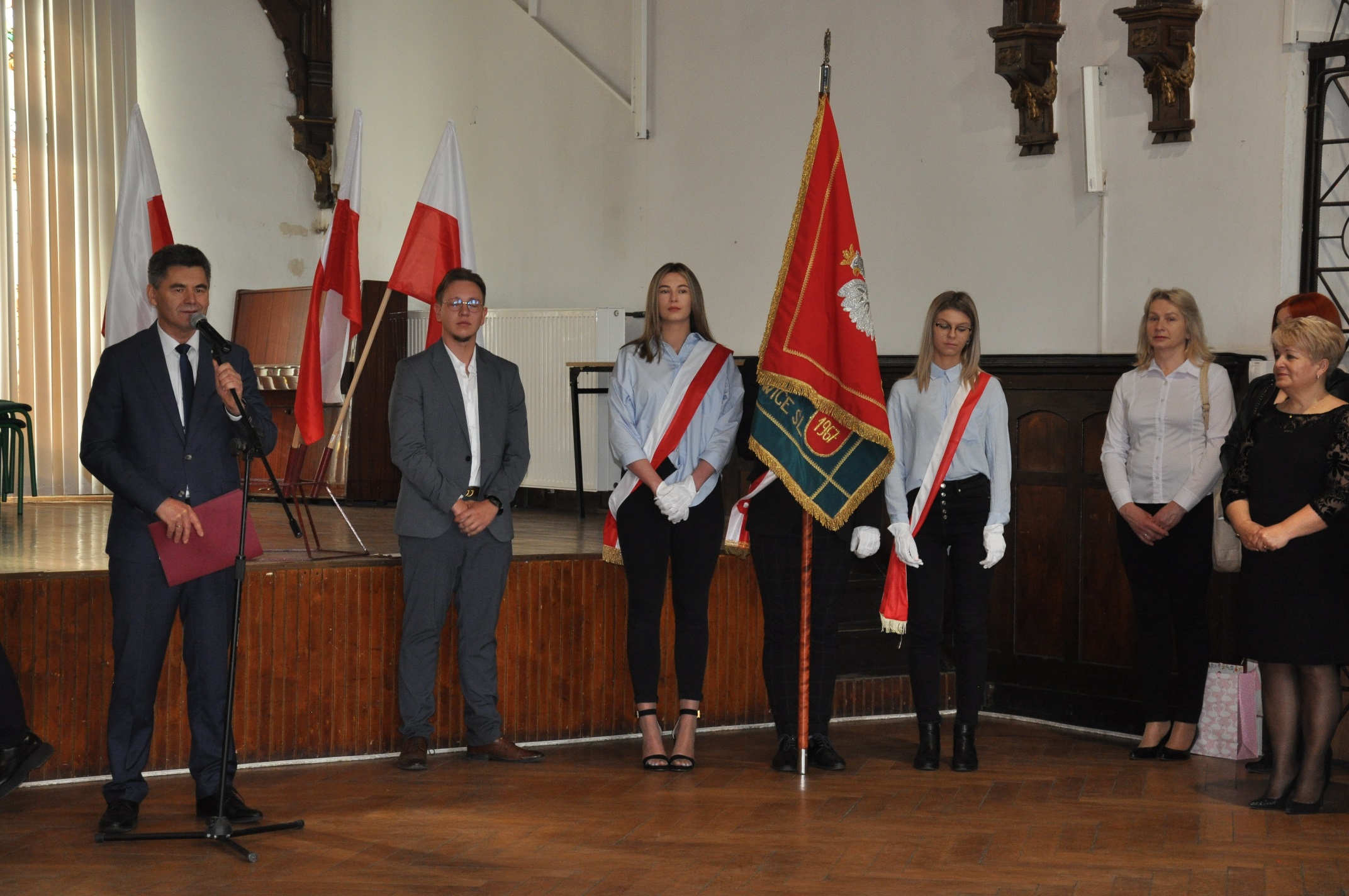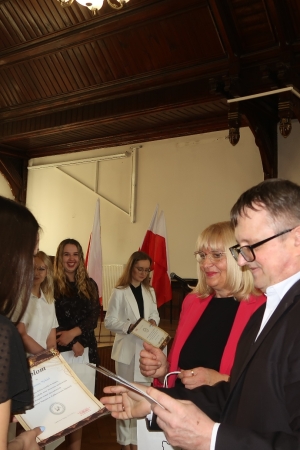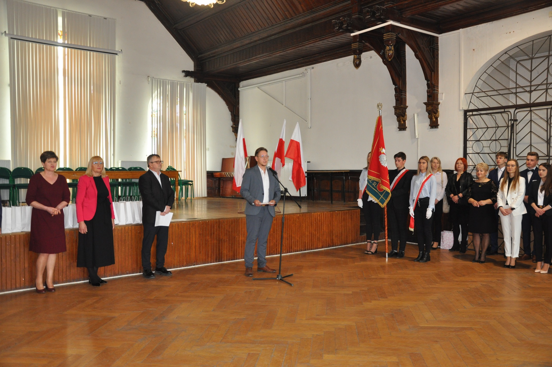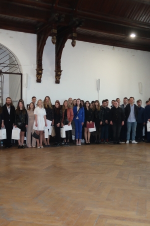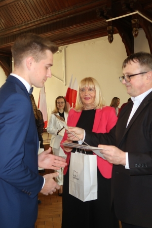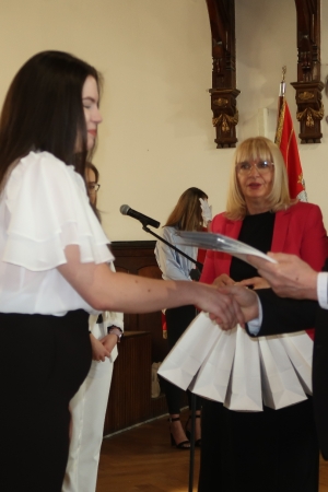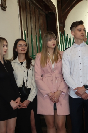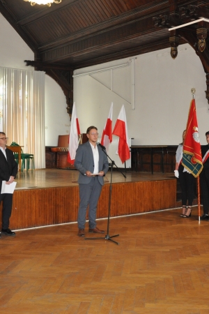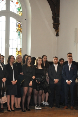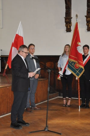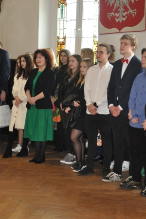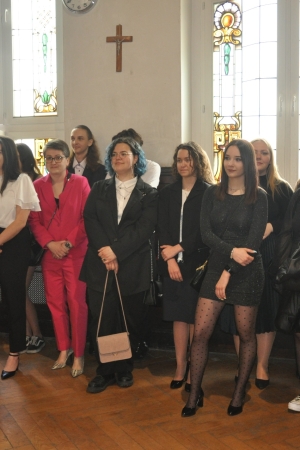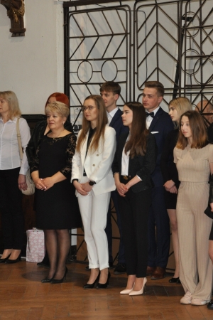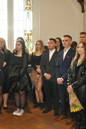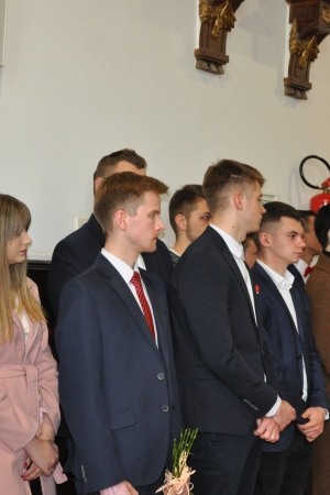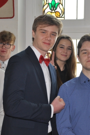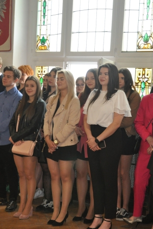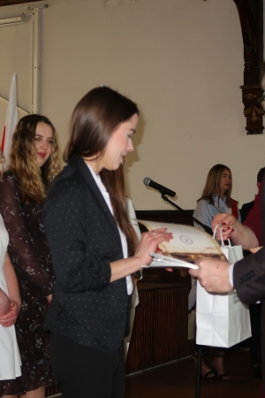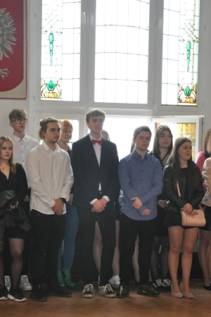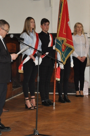 W imieniu maturzystów Filip Skowron, Przewodniczący Samorządu Uczniowskiego podziękował dyrekcji, nauczycielom i wychowawcom za trud wychowania i nauczania. Zwracając się do rówieśników, powiedział, że placówka na trwałe wpisała się w ich życie, w dużej mierze ukształtowała charaktery i była bardzo przyjaznym środowiskiem.