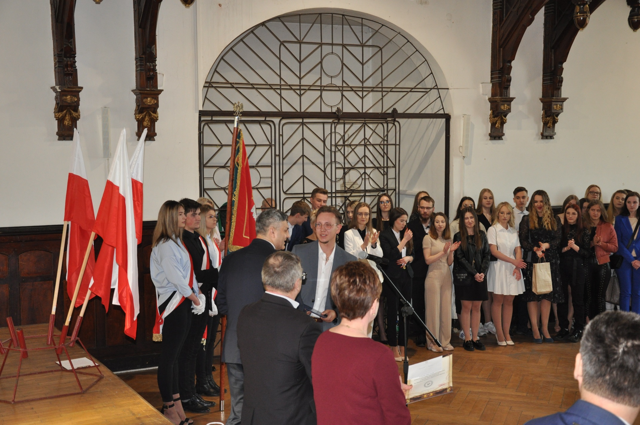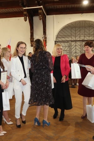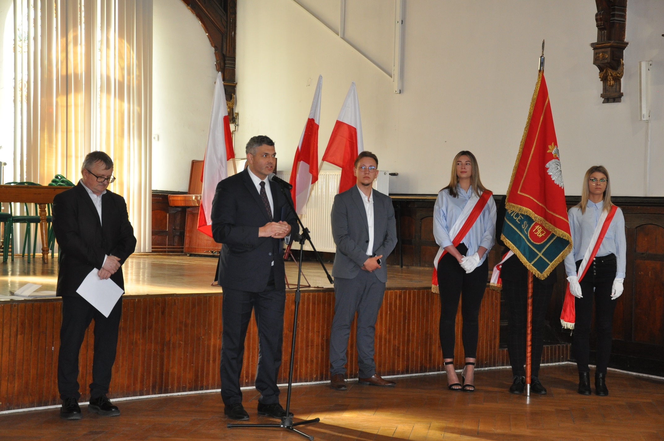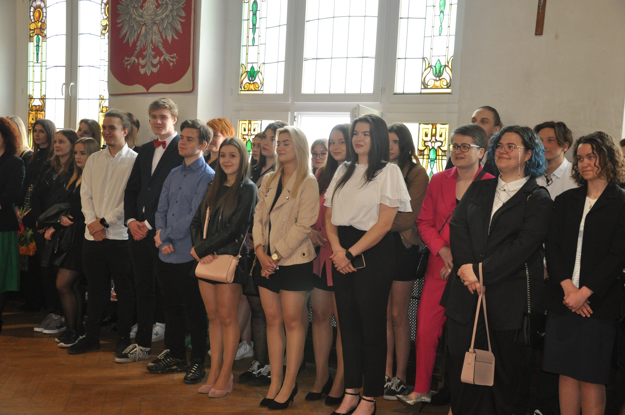 W imieniu maturzystów Filip Skowron, Przewodniczący Samorządu Uczniowskiego podziękował dyrekcji, nauczycielom i wychowawcom za trud wychowania i nauczania. Zwracając się do rówieśników, powiedział, że placówka na trwałe wpisała się w ich życie, w dużej mierze ukształtowała charaktery i była bardzo przyjaznym środowiskiem.
