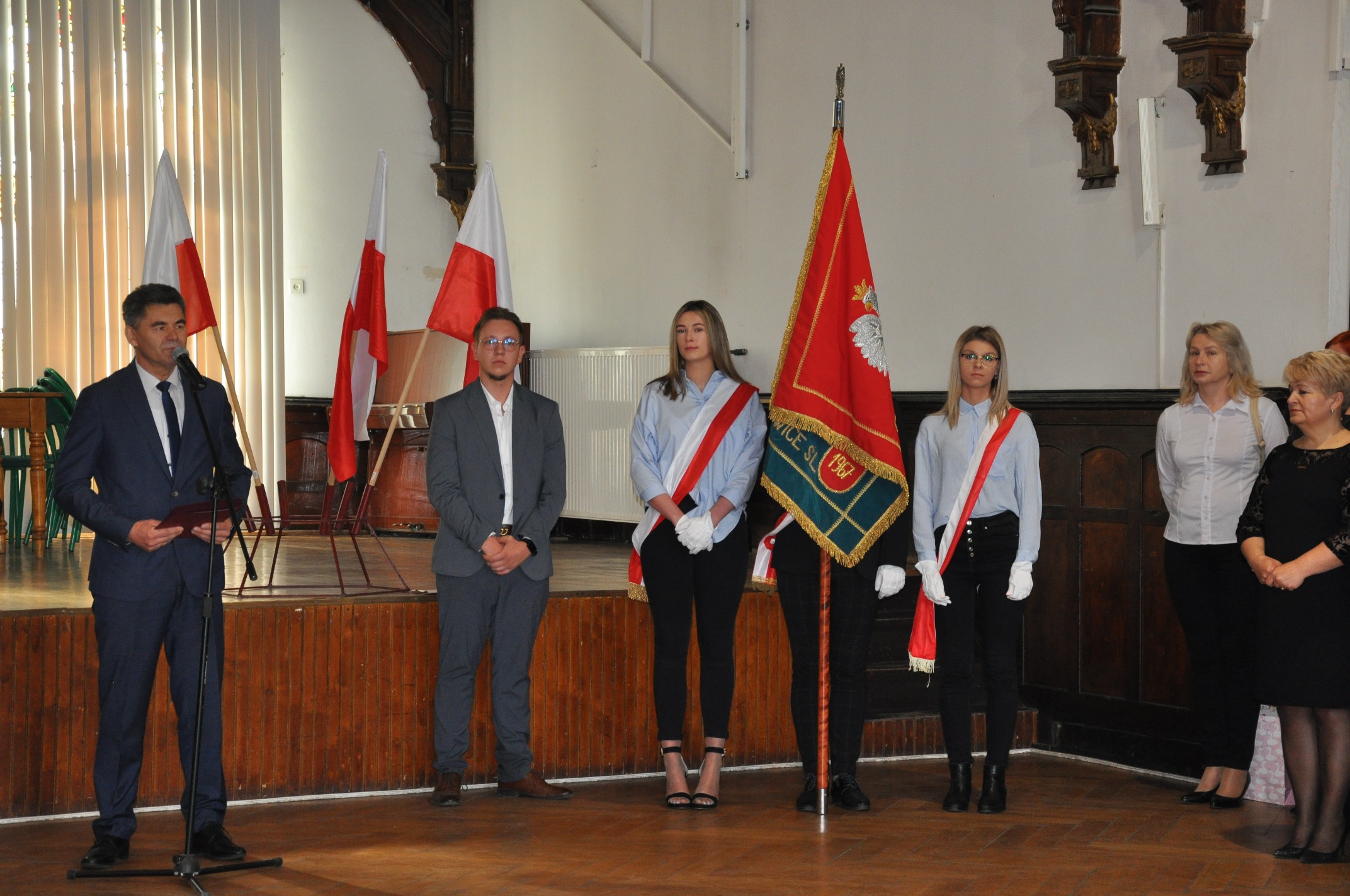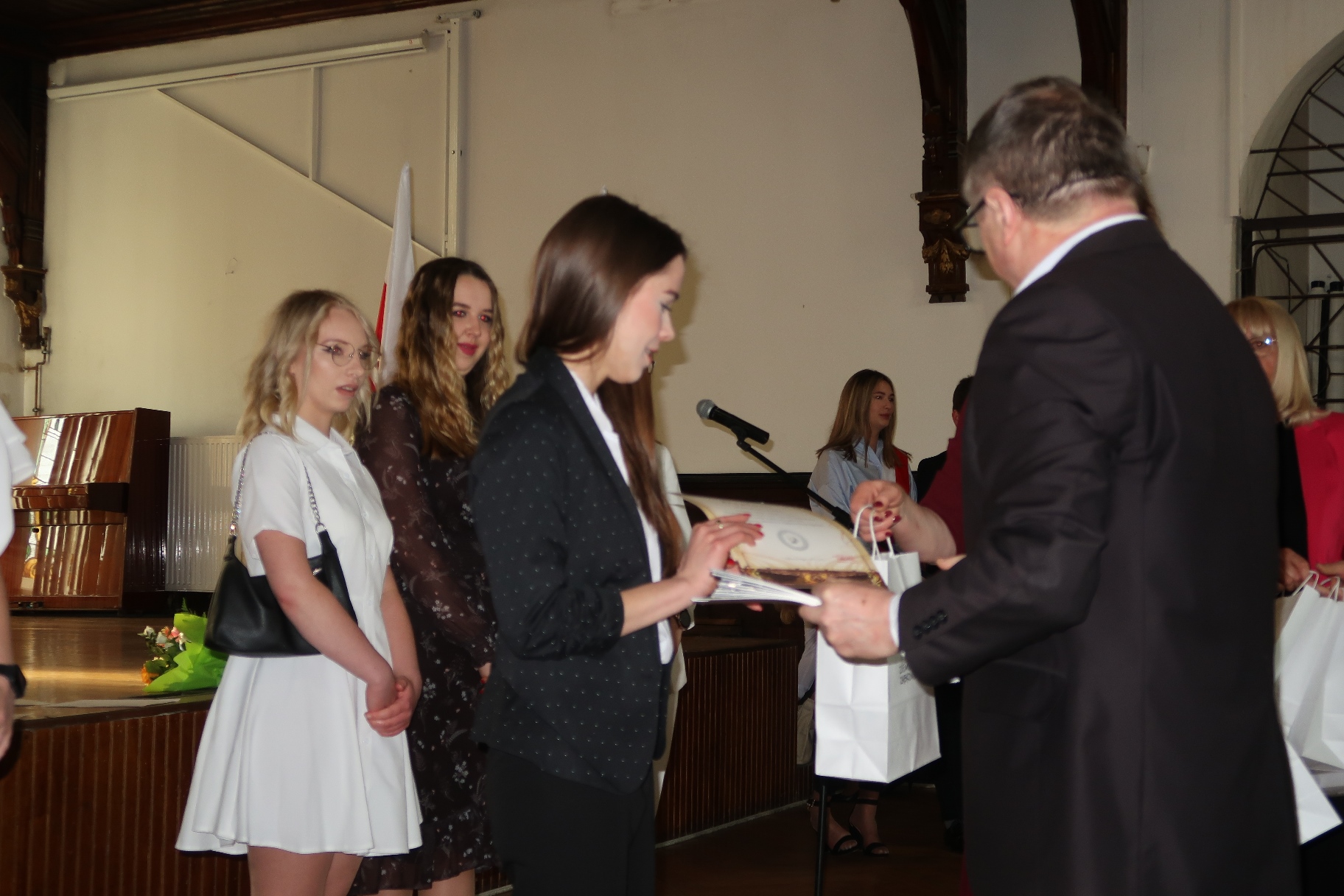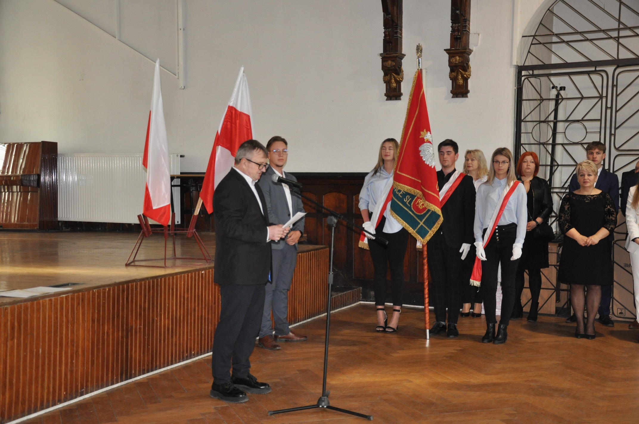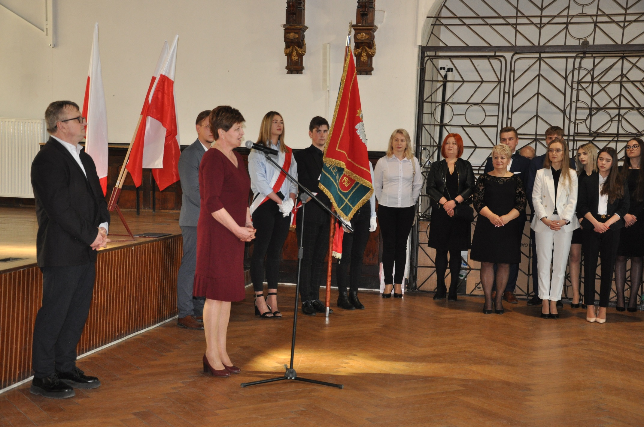 W imieniu maturzystów Filip Skowron, Przewodniczący Samorządu Uczniowskiego podziękował dyrekcji, nauczycielom i wychowawcom za trud wychowania i nauczania. Zwracając się do rówieśników, powiedział, że placówka na trwałe wpisała się w ich życie, w dużej mierze ukształtowała charaktery i była bardzo przyjaznym środowiskiem.