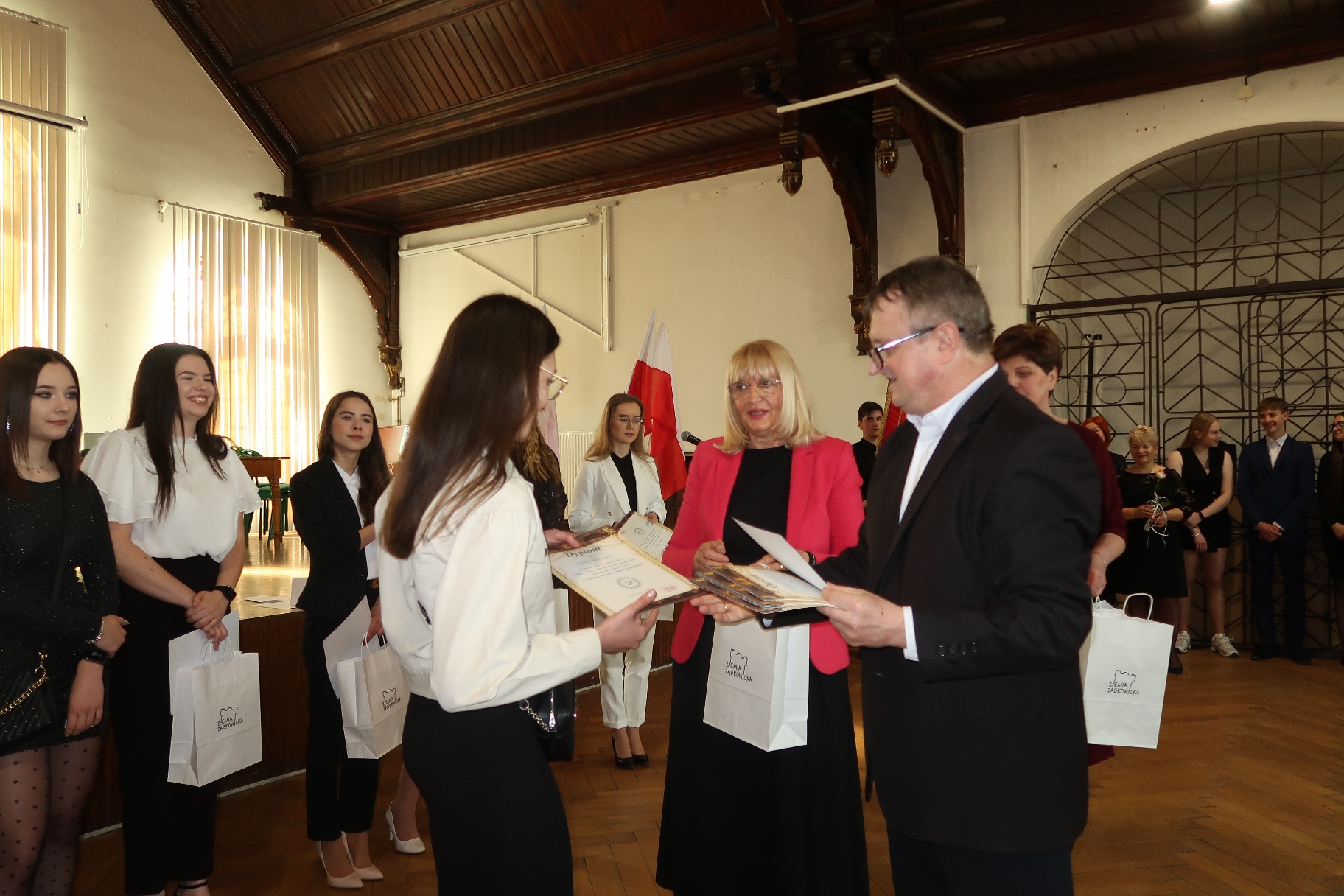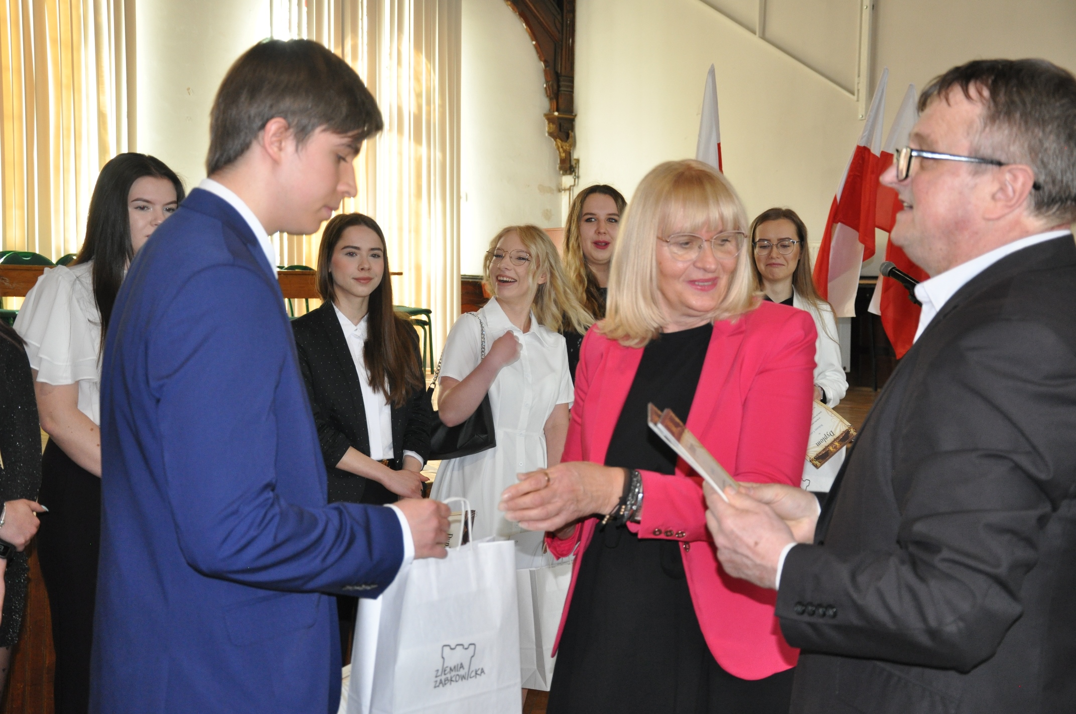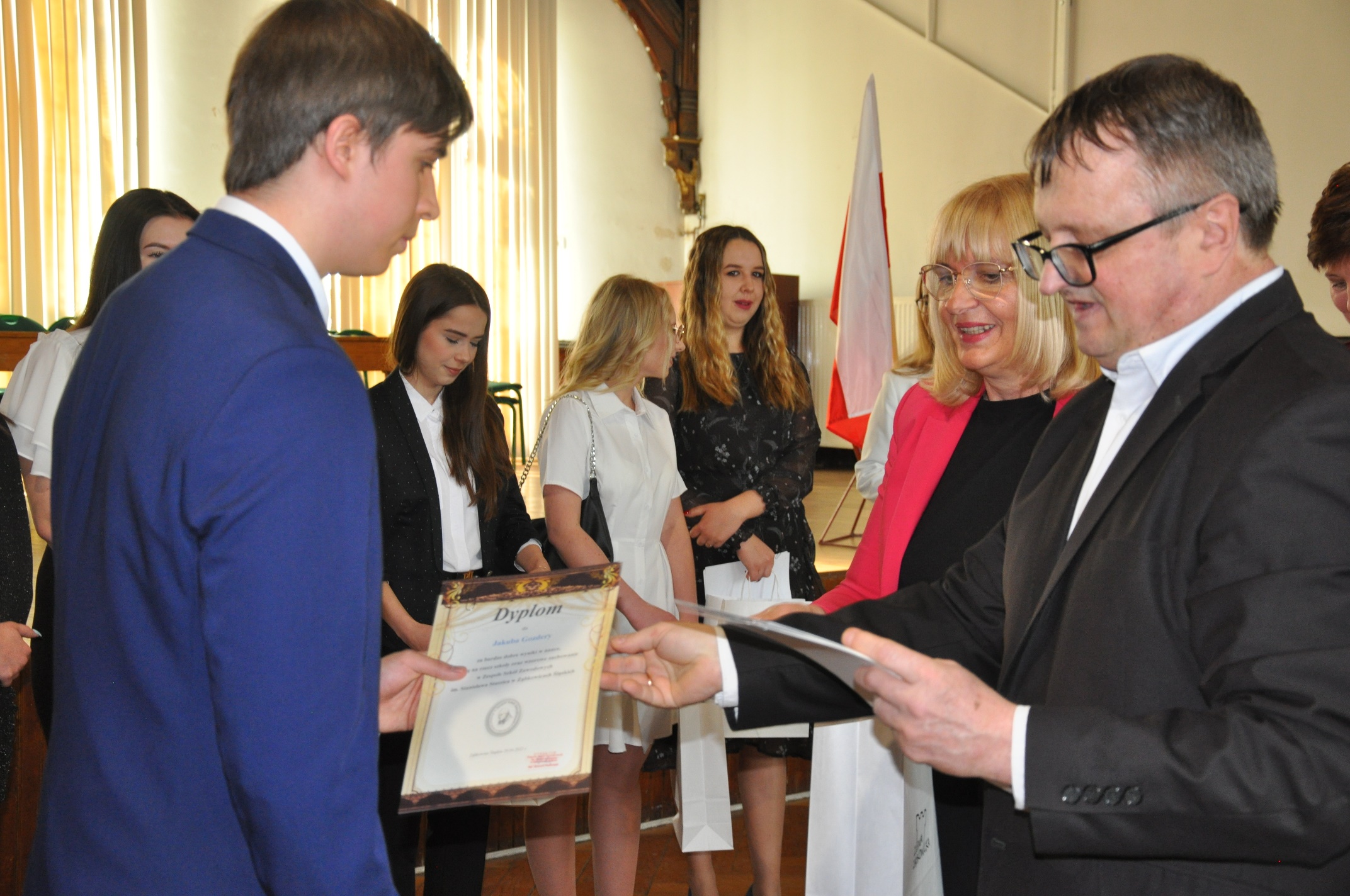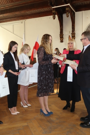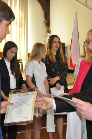 Ważnym momentem uroczystości było wręczenie nagród najlepszym absolwentom. Nagrodę Starosty Powiatu Ząbkowickiego otrzymały: Ewa Karpierz, Karolina Bierut (obie ze średnią ocen 5,28) oraz Roksana Fil (średnia ocen 5,04), a nagrodę Rady Rodziców Michał Nastała (5,0). Wysokie wyniki w nauce uzyskali również: Zofia Kudryńska (4,92), Sara Buczko (4, 86), Daria Pogodzińska (4,79), Martyna Pawłowska (4,78), Wiktoria Dragulska (4,77), Roksana Łotysz i Paulina Starczewska (4,76), Kacper Helon i Julian Zerek (4,75) oraz Klaudia Zieleń (4,71), Jakub Gozdera (4,68), Emilia Sokołowska i Kacper Adamowski (4,60), Wanessa Nykiel (4,56), Wiktoria Wereśniak (4,54) i Weronika Gumiężny (4,52).