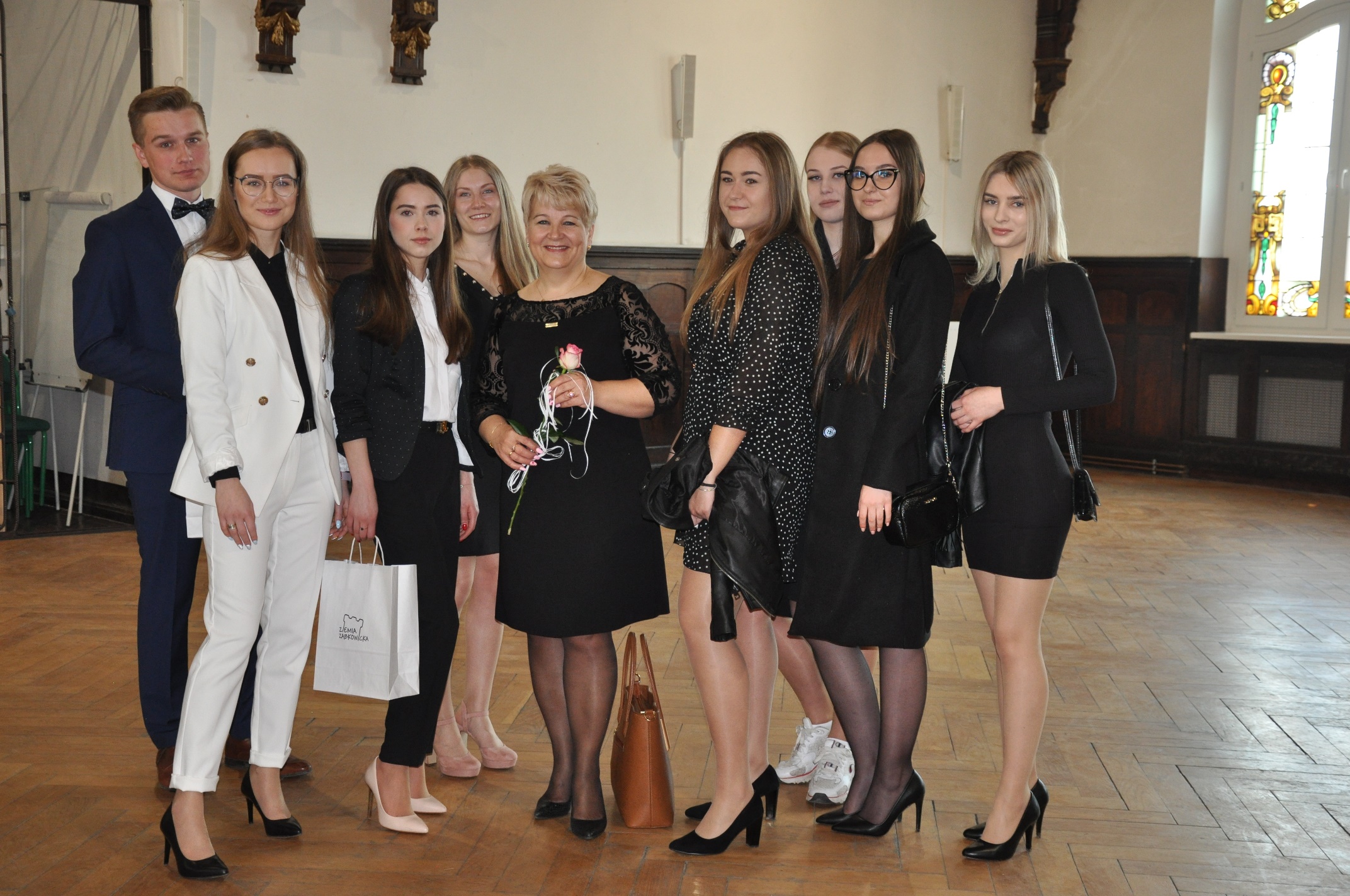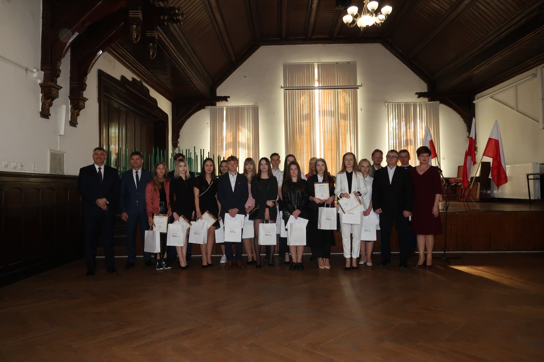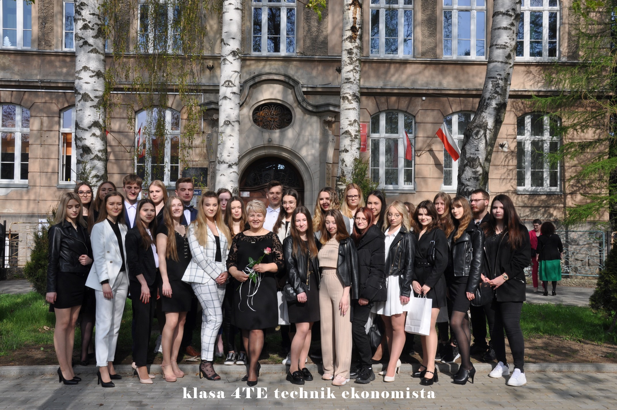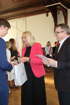 Miłym akcentem spotkania były podziękowania od rodziców, w imieniu których Pani Anna Kudryńska wręczyła kwiaty: Panu Staroście i Burmistrzowi, dyrekcji oraz wychowawcom. W tak wyjątkowym dniu nie zabrakło pamiątkowych zdjęć – po zakończeniu apelu uczniowie wraz z wychowawcami udali się przed szkołę, a następnie do swoich klas, by tu otrzymać świadectwa i pożegnać się z opiekunami.