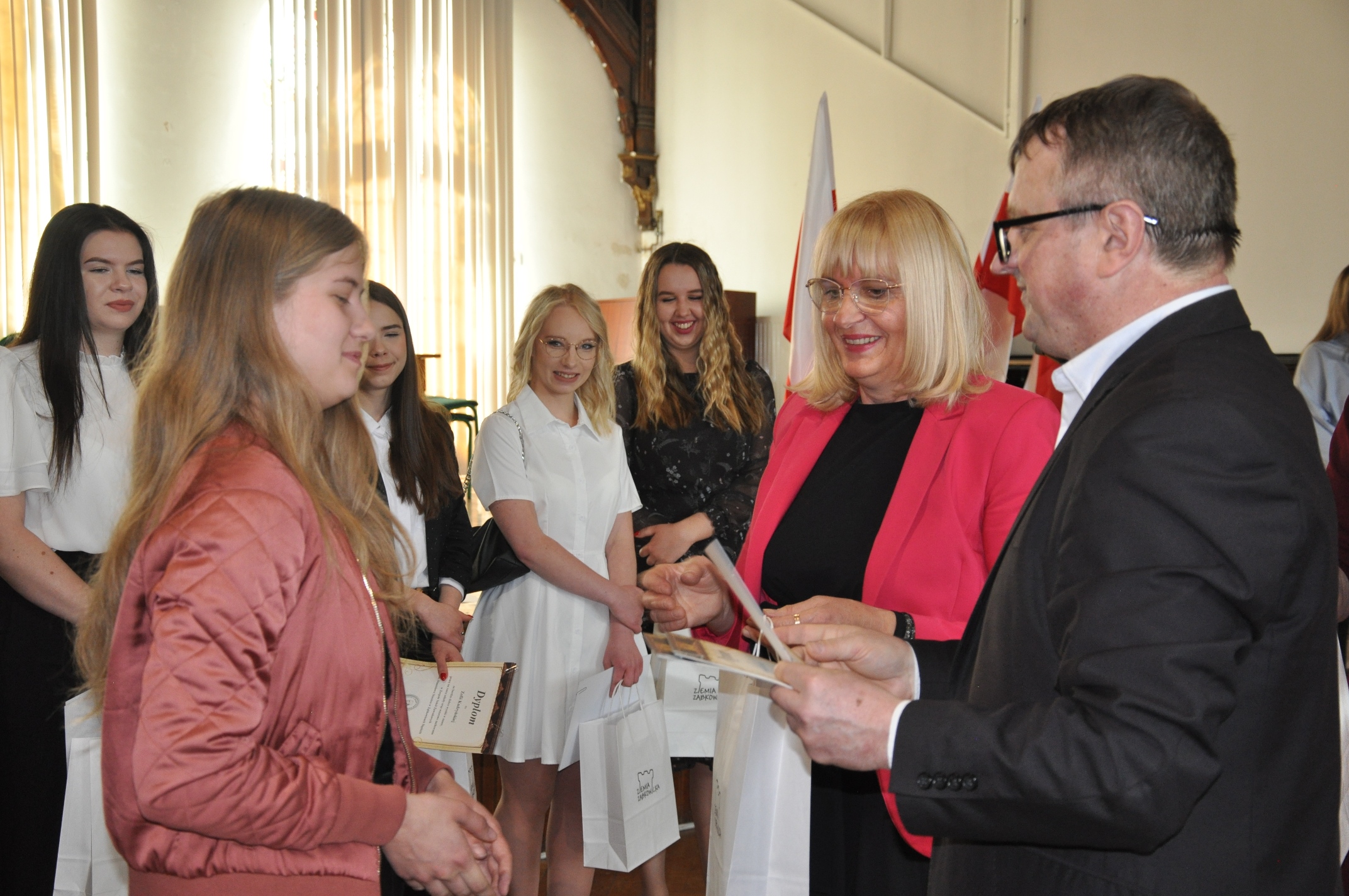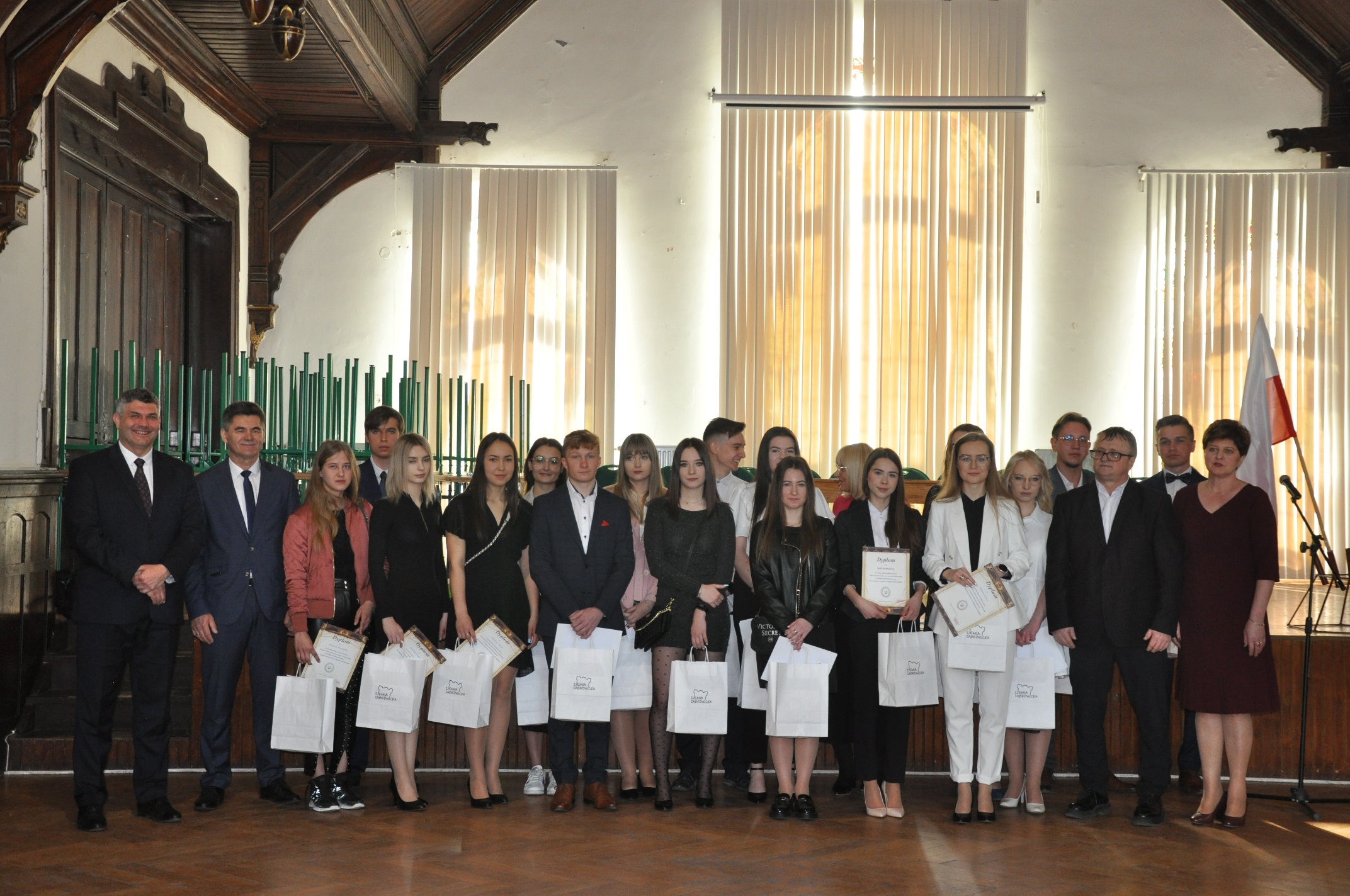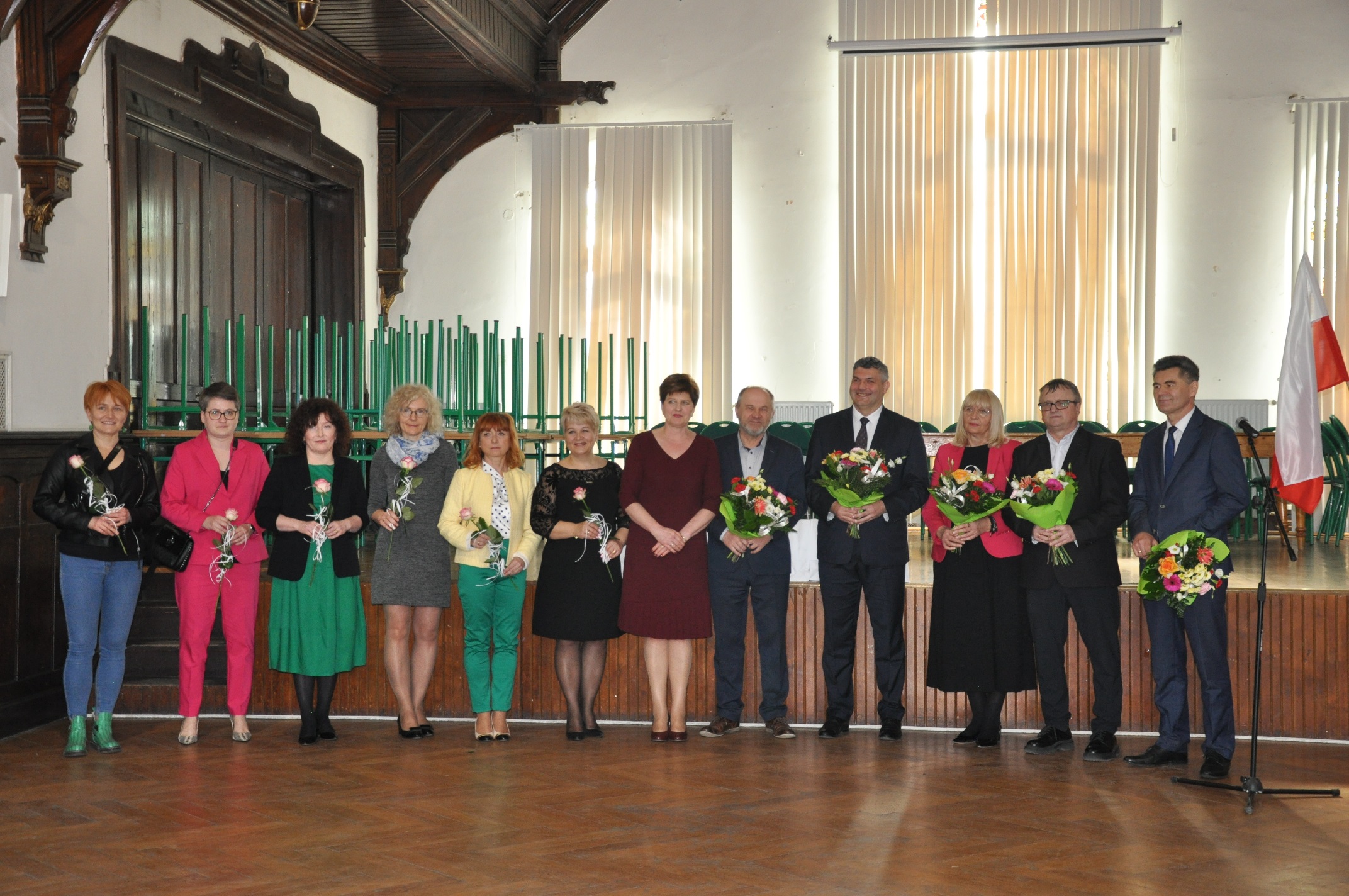 Miłym akcentem spotkania były podziękowania od rodziców, w imieniu których Pani Anna Kudryńska wręczyła kwiaty: Panu Staroście i Burmistrzowi, dyrekcji oraz wychowawcom. W tak wyjątkowym dniu nie zabrakło pamiątkowych zdjęć – po zakończeniu apelu uczniowie wraz z wychowawcami udali się przed szkołę, a następnie do swoich klas, by tu otrzymać świadectwa i pożegnać się z opiekunami.