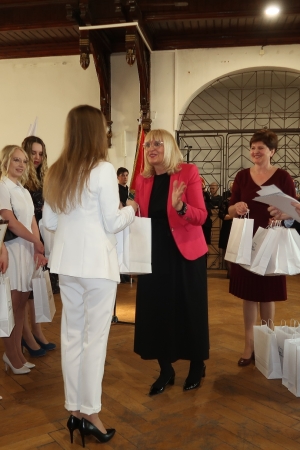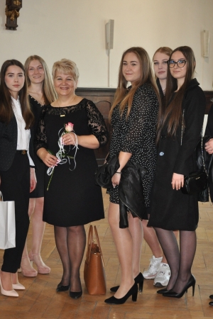 Dyrektor Szkoły Pan Ryszard Pawłowski podsumował cztery lata nauki maturzystów, m.in. zachęcił do przypomnienia sobie pierwszego dnia w placówce, ważnych wydarzeń z życia klasy i szkoły oraz długich tygodni w ławce szkolnej, podczas których uczniowie uczyli się zarówno tego, co lubili, jak i tego, co tylko musieli przyswoić. Pan Dyrektor podkreślił, że maturzyści przez ostatnie cztery lata byli podmiotem w naszej szkole. Słowa podziękowania zostały skierowane do uczniów, którzy potraktowali pobyt w naszej placówce nie tylko jako furtkę do egzaminu maturalnego i zdobycia kwalifikacji zawodowych, ale wykorzystali ten czas i miejsce do pozytywnego działania, osiągając sukcesy w olimpiadach i konkursach, uczestniczyli w wolontariacie i honorowym krwiodawstwie, reprezentowali szkołę w zawodach sportowych i podczas występów na scenie, z okazji różnych uroczystości, przekazywali wiele cennych prawd.