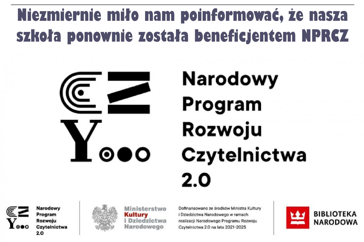 Dzięki realizacji Narodowego Programu Rozwoju Czytelnictwa do naszej biblioteki szkolnej zostały zakupione nowe tytuły lektur oraz nowości wydawnicze. Wszystkie ciekawe i warte przeczytania. Księgozbiór wzbogacił się o 338 pozycji książkowych. Na potrzeby biblioteki zakupiono również sprzęt w postaci projektora, laptopa i drukarki.