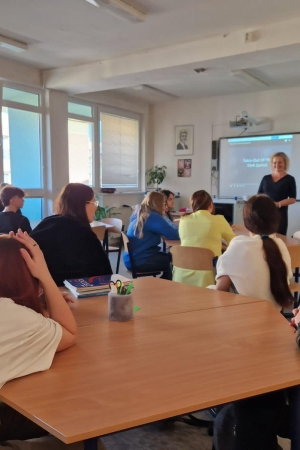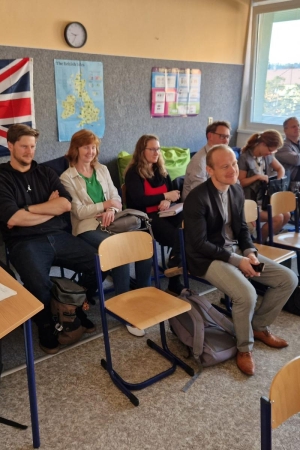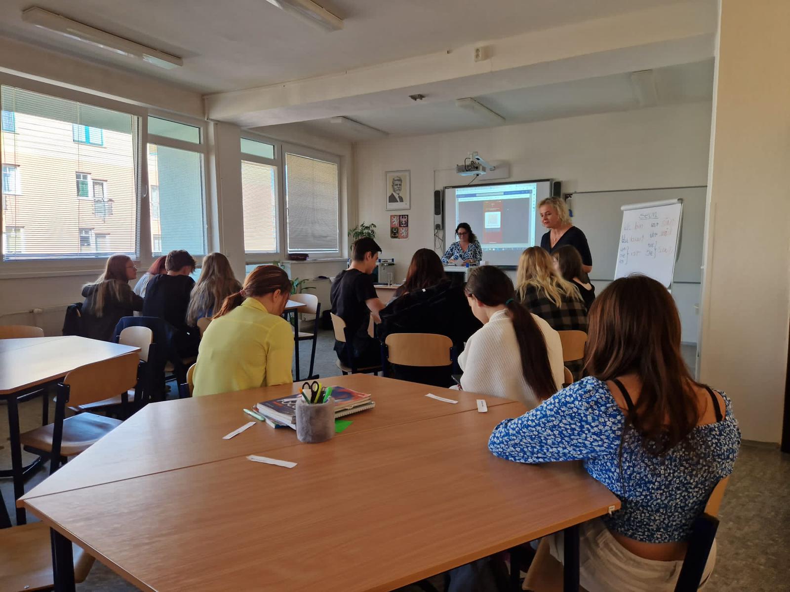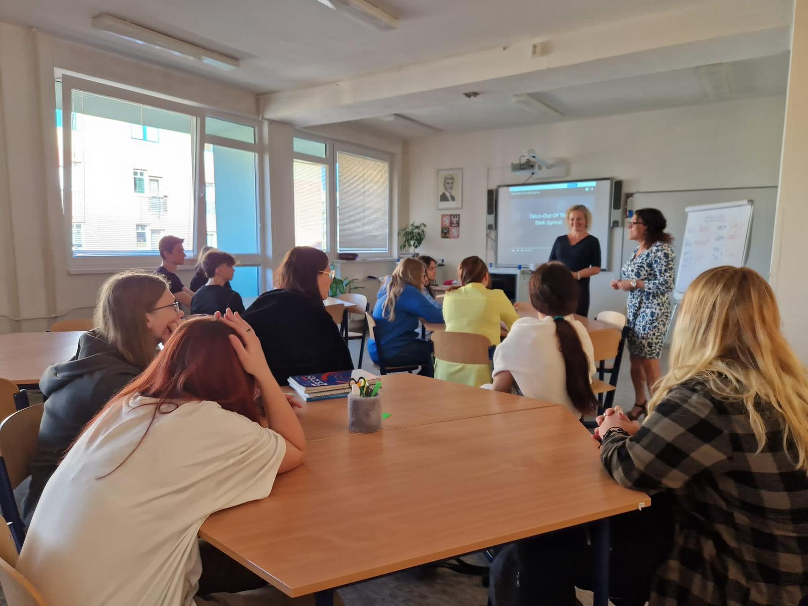 W poniedziałek 25.09.2023 roku Pani Agnieszka Jasek Łata nauczycielka języka niemieckiego wraz z nauczycielką języka angielskiego Panią Veroniką Kyselową przeprowadziła pokazową lekcję niemiecko- angielską w zaprzyjaźnionej szkole zawodowo- technicznej (https://sposdk.cz/) w Dvorze Kralowe w Czechach.