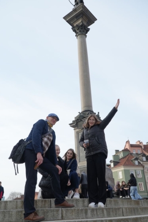 Następnie Pan Bogdan Tuła poprowadził naszą grupę przez Krakowskie Przedmieście pod Zamek Królewski, po drodze opowiadał o ważnych dla stolicy i całej Polski miejscach i osobach. Między innymi przeszliśmy obok Belwederu, znanych kościołów warszawskich, związanych z Prymasem Tysiąclecia Stefanem Wyszyńskim i ks. Janem Twardowskim, a także obok kamienicy, w której mieszkał Bolesław Prus. Mieliśmy też czas wolny, żeby na własną rękę pospacerować po reprezentacyjnych miejscach stolicy czy zjeść słodki deser w pobliskich kawiarniach.