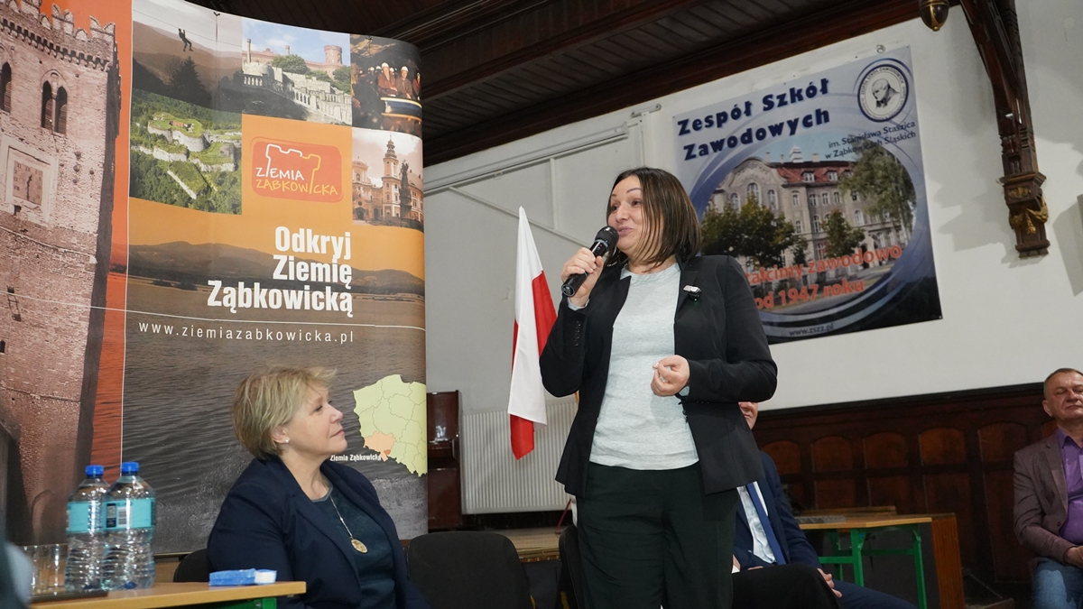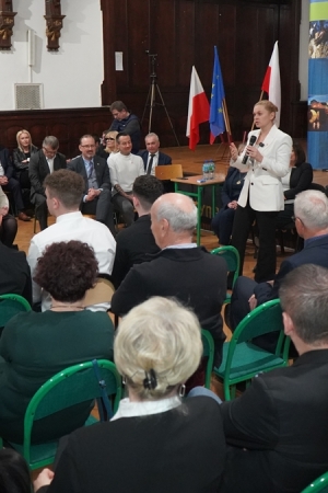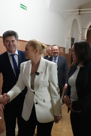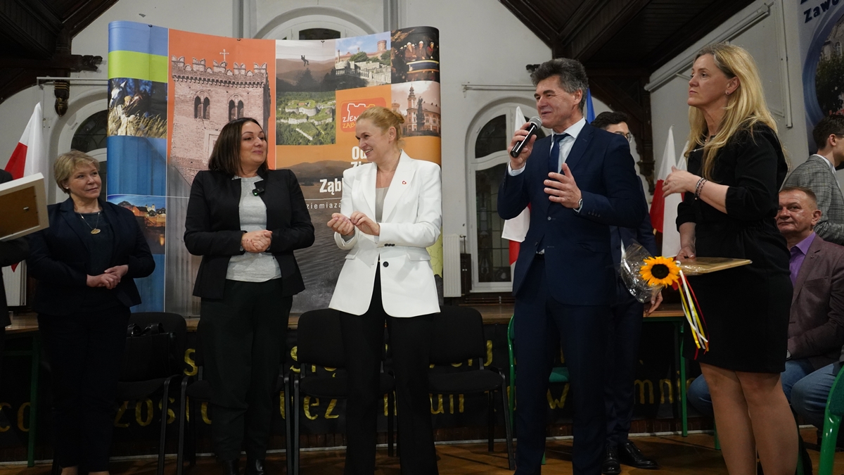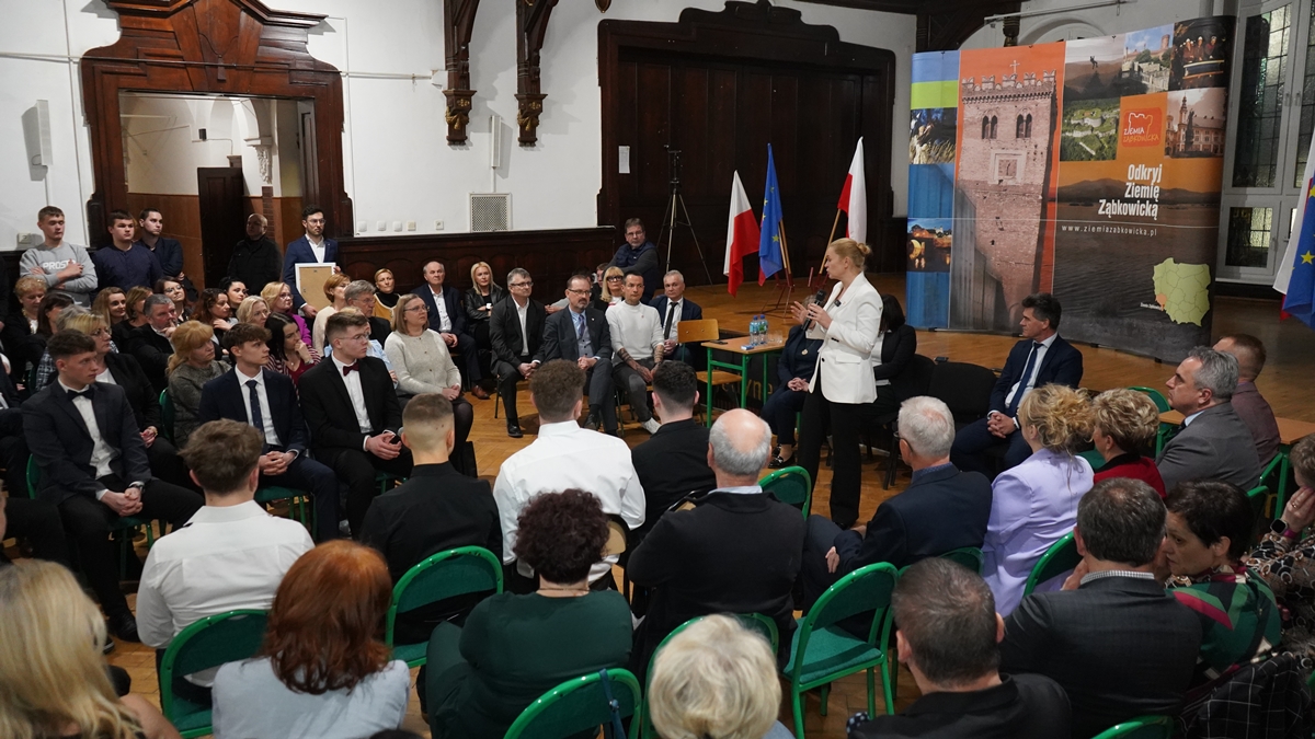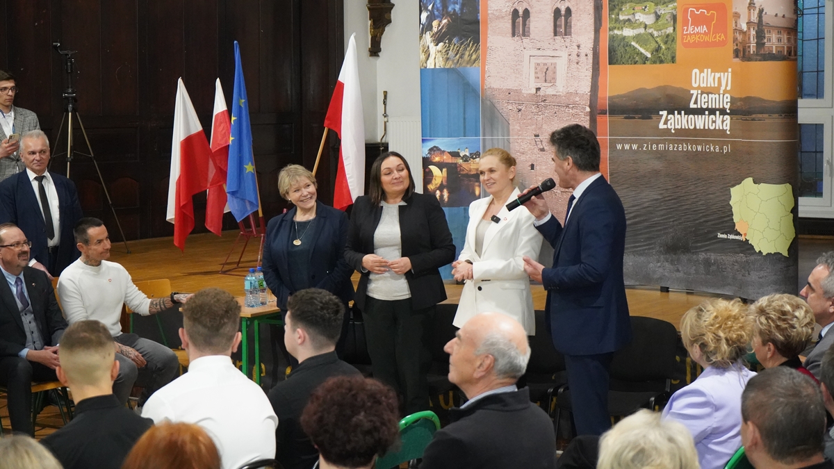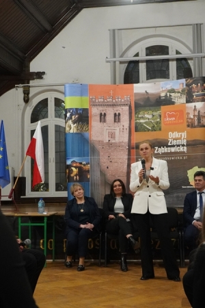 Z zaproszenia Starosty Ząbkowickiego - Romana Festera z Panią Minister Edukacji skorzystali dyrektorzy, wicedyrektorzy oraz przedstawiciele kadry pedagogicznej szkół z wszystkich gmin powiatu ząbkowickiego. Ponad 130 osób zaproszonych brało udział w spotkaniu z Panią Minister, Marszałkiem Sejmu – Moniką Wielichowską, Wojewodą Dolnośląskim – Maciejem Awiżeniem, Dolnośląskim Kuratorem Oświaty - Ewą Skrzywanek oraz posłem na Sejm RP – Marcinem Józefaciukiem.