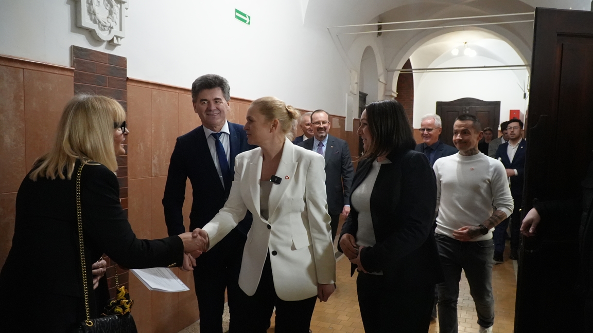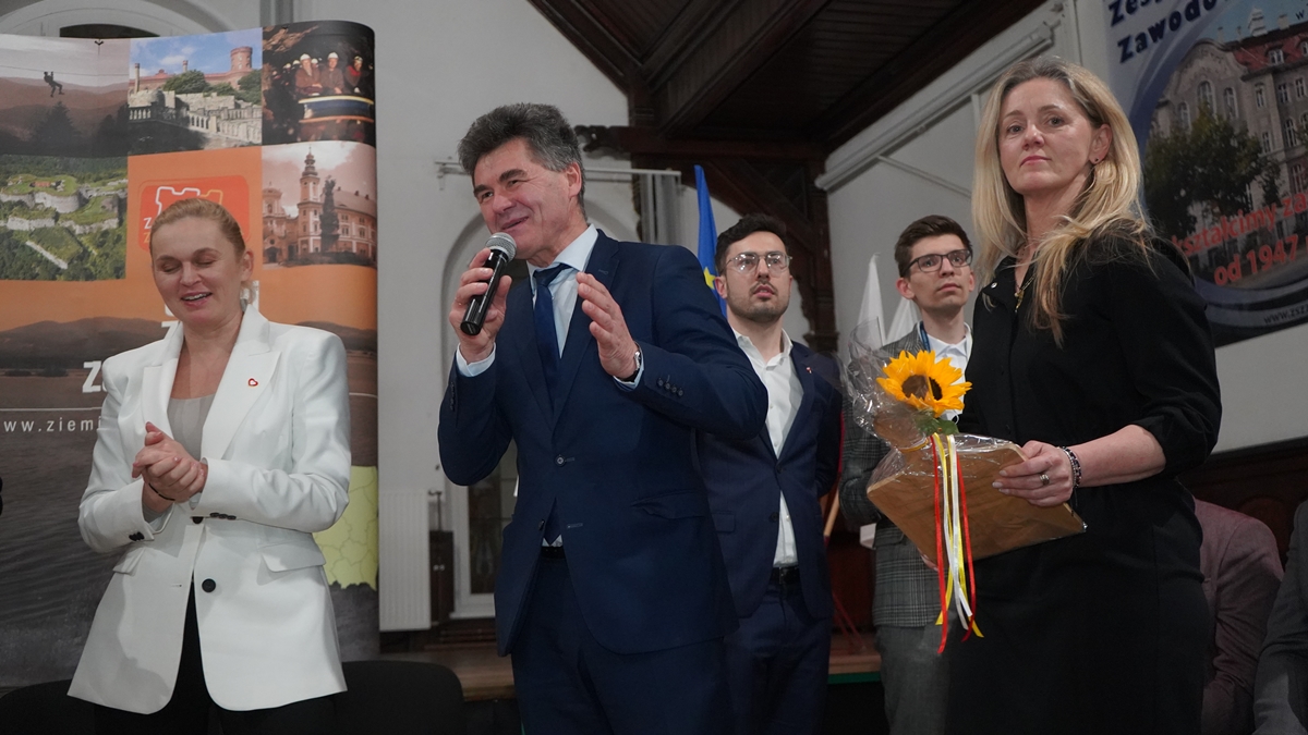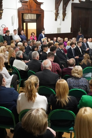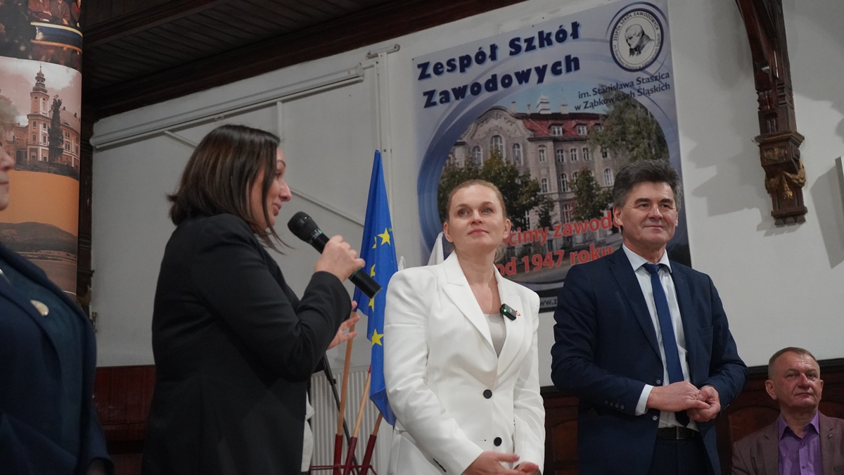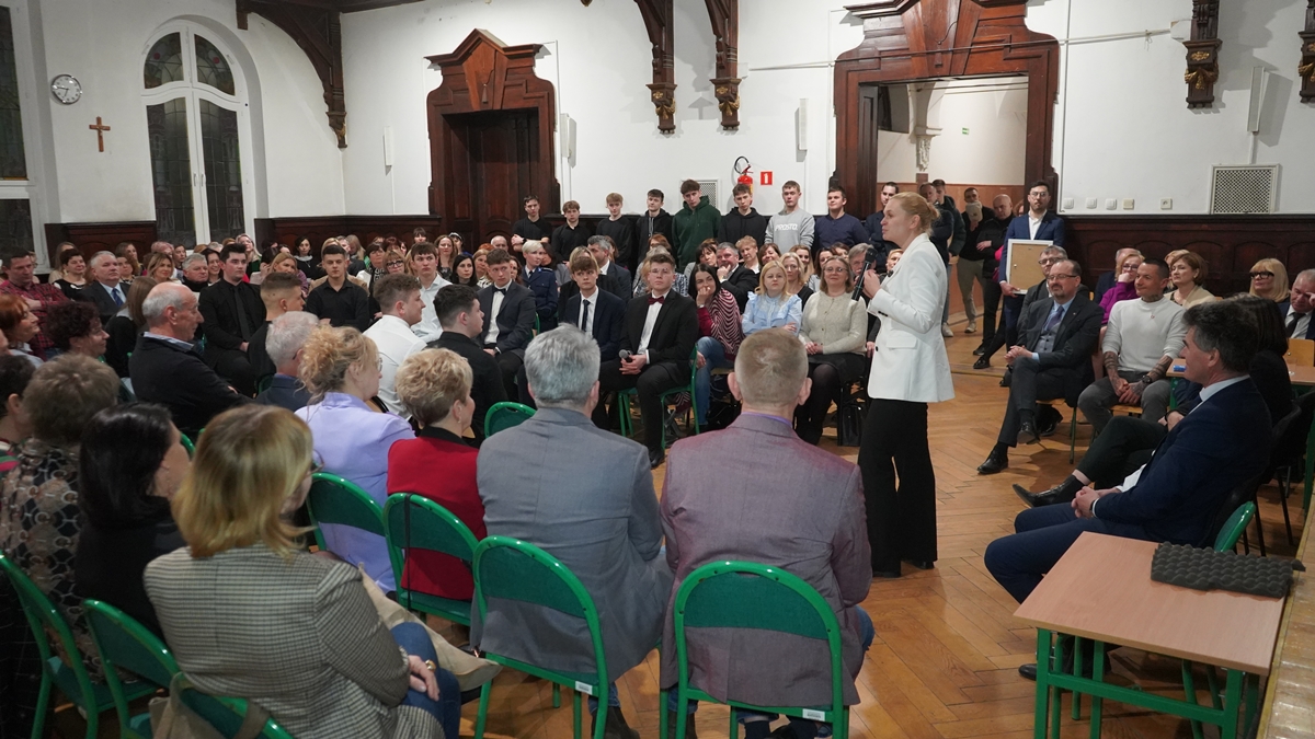Z zaproszenia Starosty Ząbkowickiego - Romana Festera z Panią Minister Edukacji skorzystali dyrektorzy, wicedyrektorzy oraz przedstawiciele kadry pedagogicznej szkół z wszystkich gmin powiatu ząbkowickiego. Ponad 130 osób zaproszonych brało udział w spotkaniu z Panią Minister, Marszałkiem Sejmu – Moniką Wielichowską, Wojewodą Dolnośląskim – Maciejem Awiżeniem, Dolnośląskim Kuratorem Oświaty - Ewą Skrzywanek oraz posłem na Sejm RP – Marcinem Józefaciukiem.