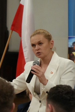 Mówiono też o problemach z jakimi mierzą się dzisiaj poradnie psychologiczno-pedagogiczne oraz szkoły specjalne. Poruszono również kwestię regulacji prawnych domów wczasów dziecięcych. Dużo dyskutowano o coraz większej skali przemocy w szkołach. Pani Minister udzielała odpowiedzi i podkreślała w wielu sprawach autonomiczność szkół, kadry zarządzającej w podejmowaniu decyzji i ich odpowiedzialność za ograniczenia jakie należy wprowadzić w szkołach.