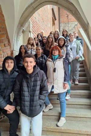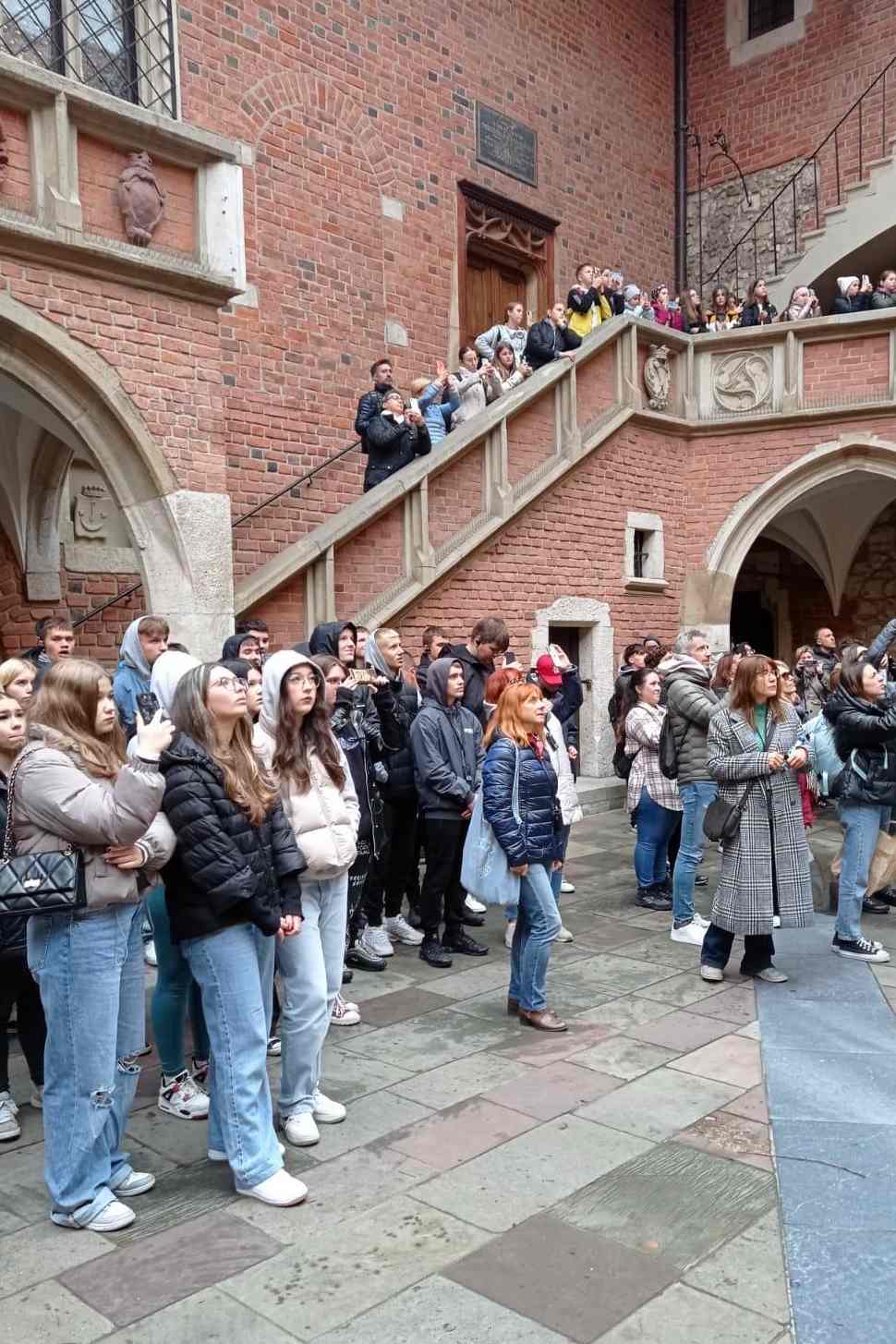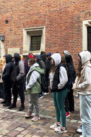 Podczas tej części wycieczki młodzież zobaczyła również Barbakan, słynne Okno Papieskie, z którego przed laty pozdrawiał młodzież Święty Jan Paweł II w trakcie swoich podróży do Krakowa, na Wawelu uczniowie odwiedzili kryptę z grobami słynnych Polaków oraz wspięli się na wieżę aby dotknąć Dzwonu Zygmunta.