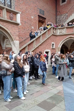 Drugiego dnia po śniadaniu grupa udała się na spotkanie z panią przewodnik. Pierwsza tura wycieczki obejmowała zwiedzanie zabytków najstarszej części Krakowa.