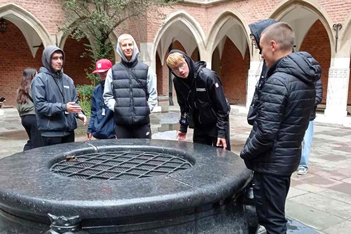 Na dziedzińcu Collegium Maius uczniowie mogli zobaczyć ruchome figurki w zegarze, następnie wędrując uliczkami dotarli najpierw do Bazyliki Ojców Franciszkanów a następnie do Kościoła Mariackiego, po zwiedzeniu którego wysłuchali hejnału granego na żywo z wieży.