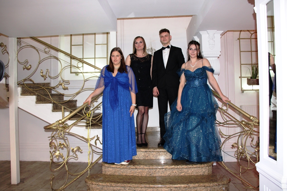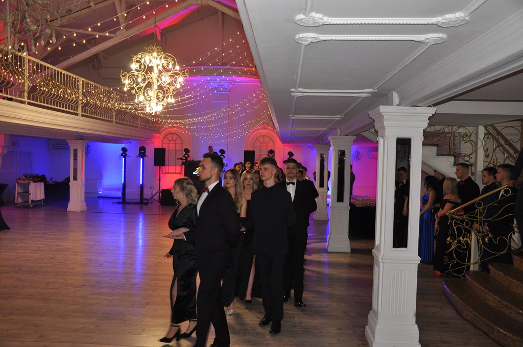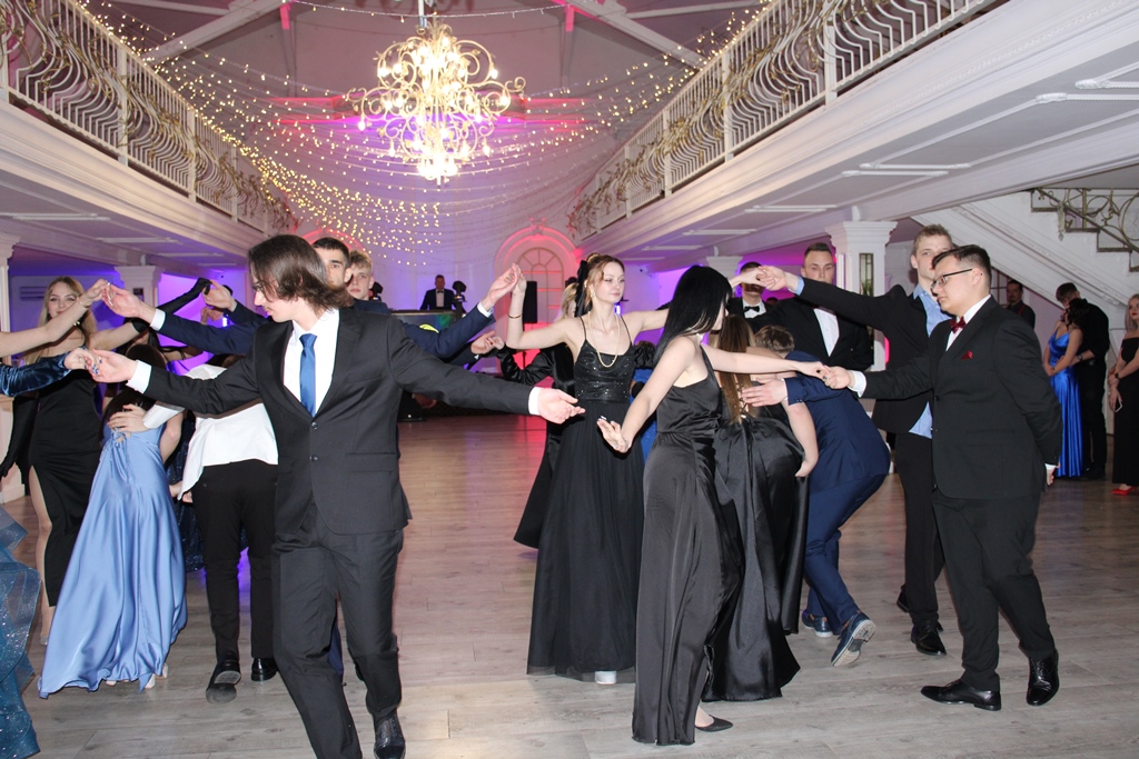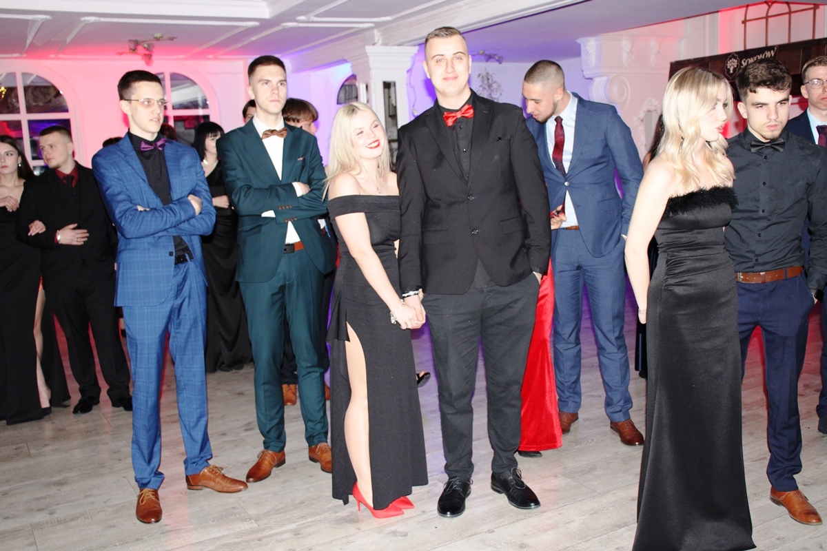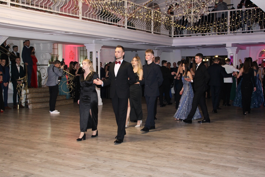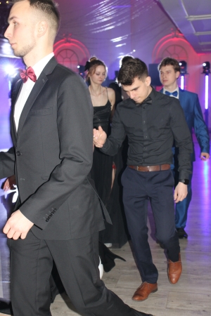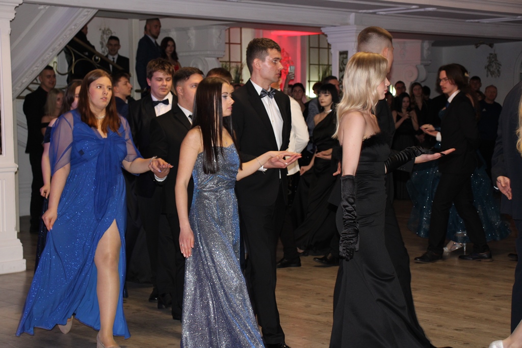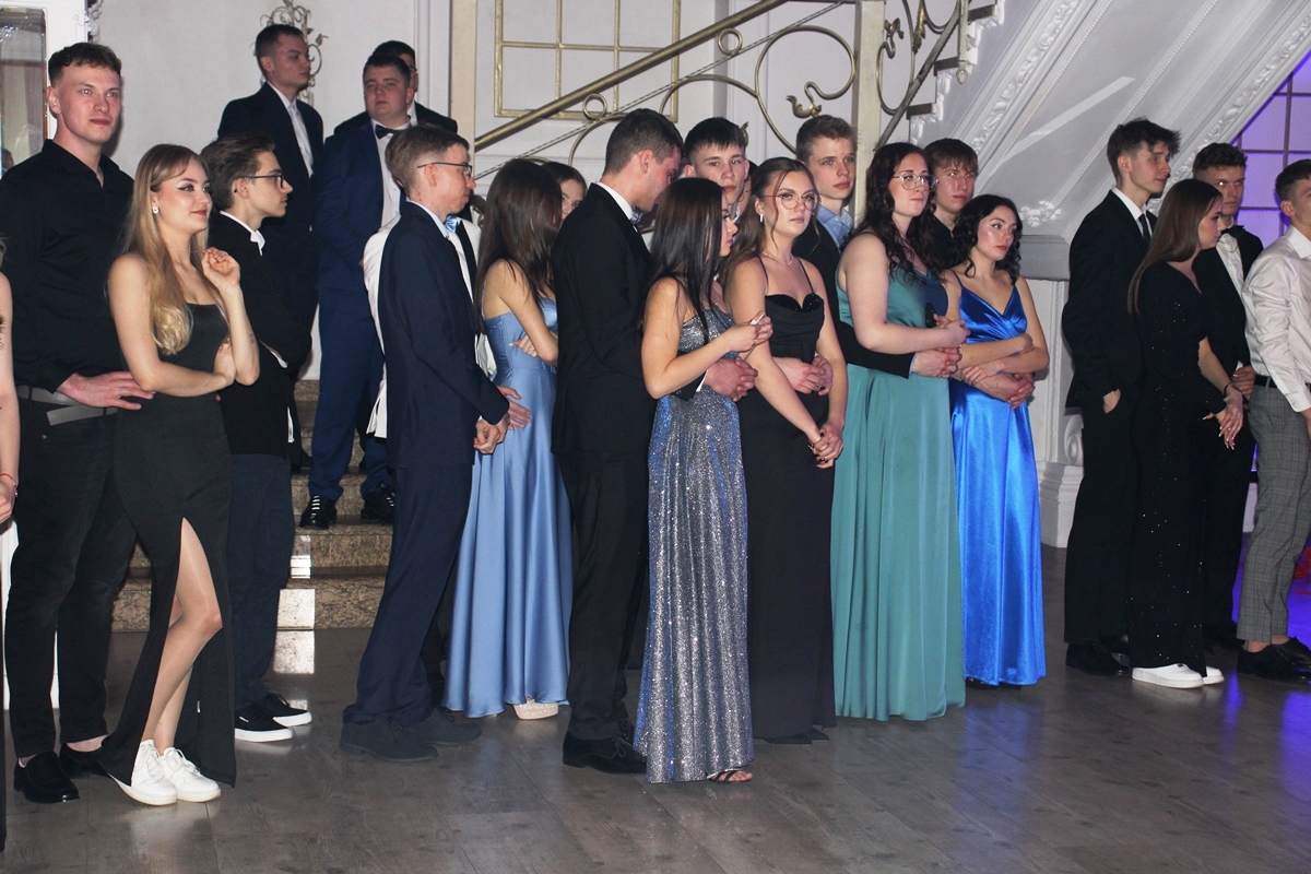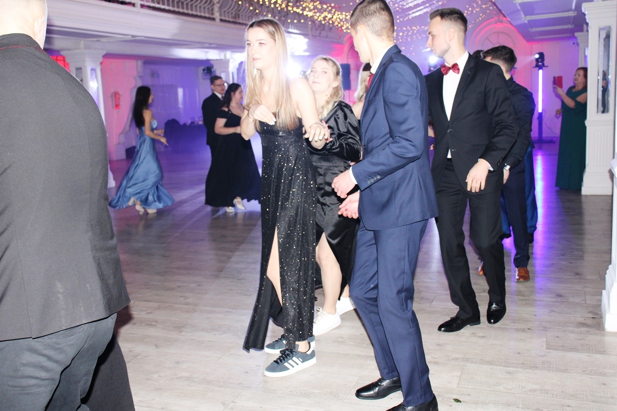 i Annę Pintal – kl. 5EE, którym podziękował za trud wychowawczy. W imieniu rodziców organizujących bal studniówkowy głos zabrała Pani Beata Kurek. Szczególnie miłym akcentem było wręczenie przez maturzystów kwiatów i przekazanie słów wdzięczności Panu Staroście, Panu Burmistrzowi, Dyrektorom Szkoły, nauczycielom, wychowawcom oraz rodzicom. Bal studniówkowy otworzył Pan Dyrektor, zapowiadając Poloneza, który przepięknie wykonali maturzyści pod czujnym okiem Pani Anny Wilk. Część oficjalna została uświetniona także przez wniesienie na salę pięknego tortu ze świecącymi fontannami. Uczniowie technikum zabrali także wszystkich w podróż sentymentalną w przeszłość ostatnich pięciu lat za pośrednictwem przygotowanej prezentacji. Zdjęcia i rodzące się przy tym wspomnienia pokazały, jak był to ważny okres w procesie wychowawczym i edukacyjnym młodzieży. Po części oficjalnej i smacznym obiedzie rozpoczęła się wspólna zabawa. Taneczna muzyka, smaczne potrawy i przekąski a przede wszystkim wspólna zabawa, rozmowy i czas mile spędzony w przyjemnym towarzystwie, pięknej sali na pewno będą długo wspominane przez maturzystów i zaproszonych gości. Szczególne podziękowania należą się organizatorom uroczystości – Rodzicom, którzy zadbali nie tylko o piękną salę, smaczne menu, ale przede wszystkim o sympatyczną atmosferę. Młodzieży należy podziękować za pierwszy zdany egzamin z kulturalnego i dojrzałego zachowania się na zabawie studniówkowej.