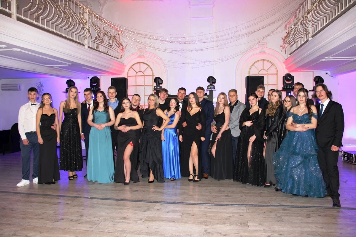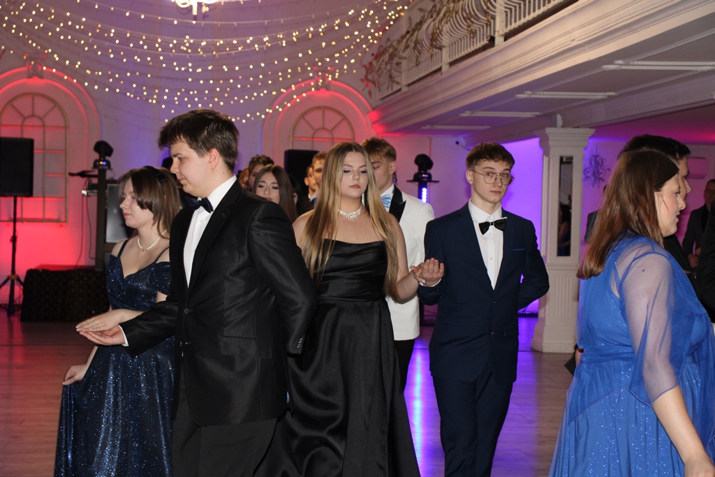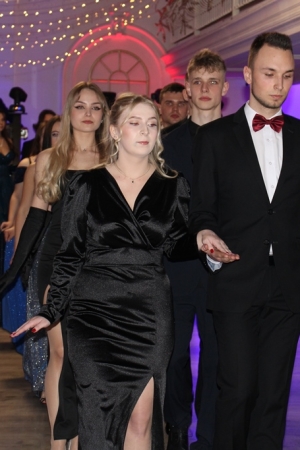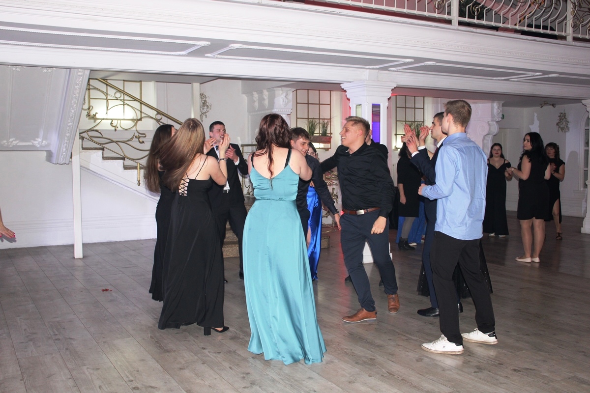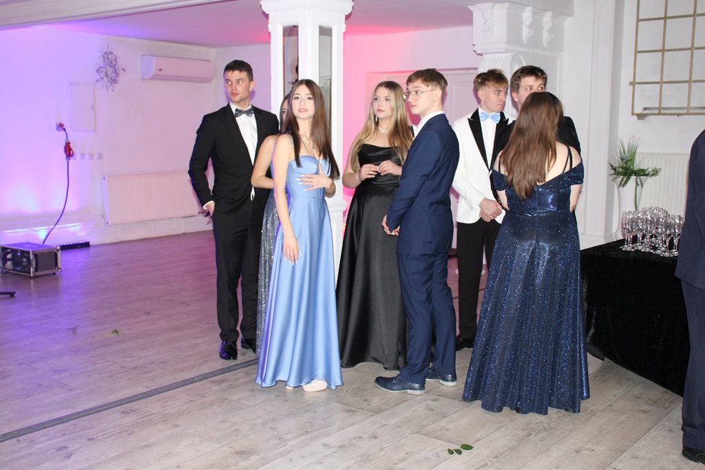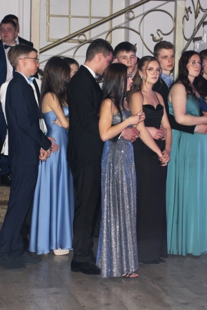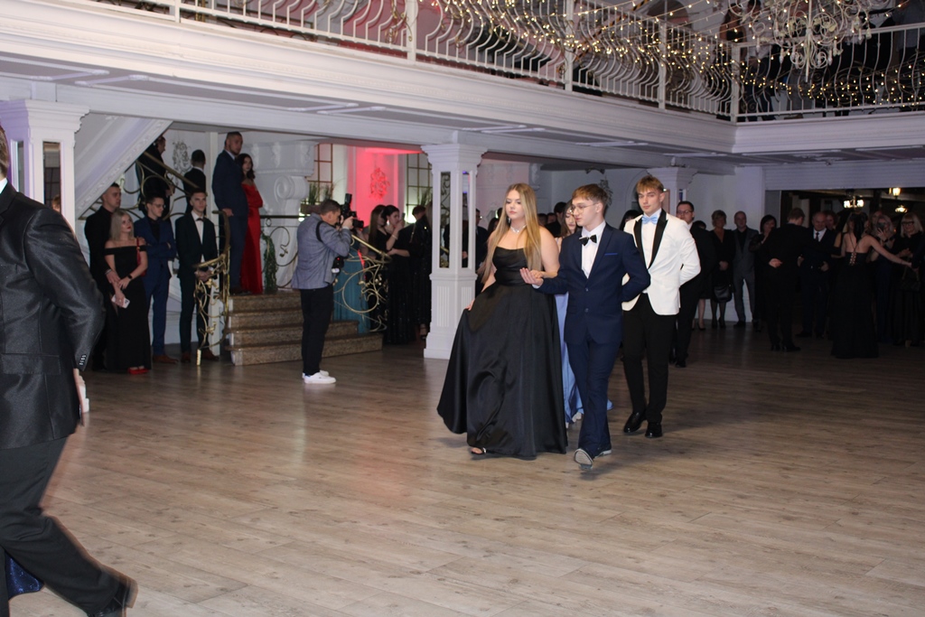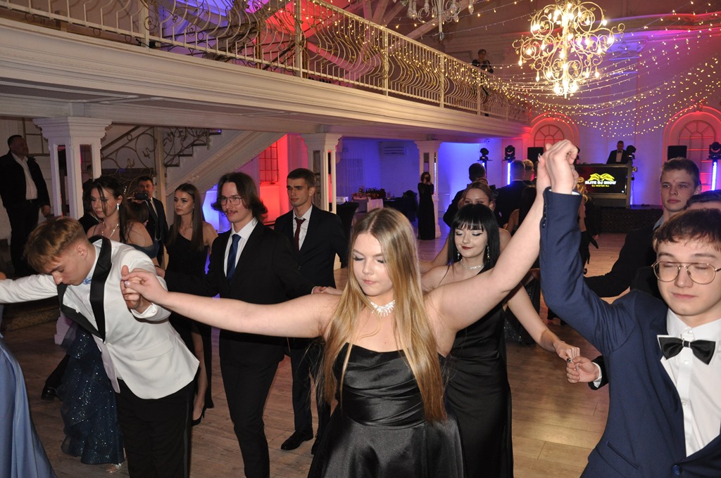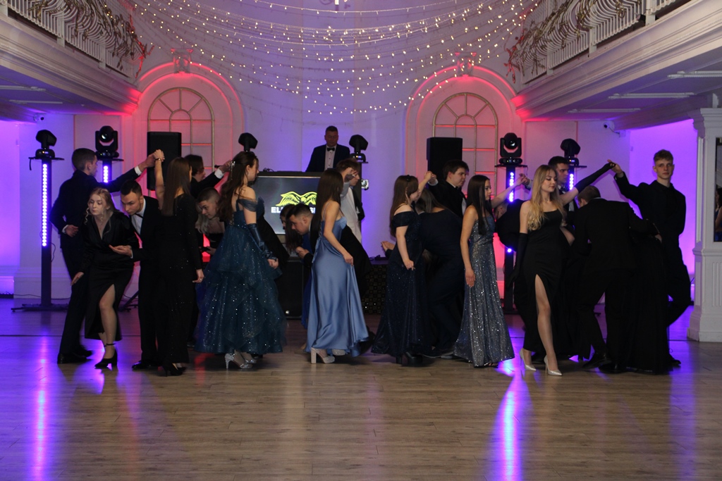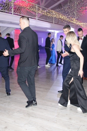 i Annę Pintal – kl. 5EE, którym podziękował za trud wychowawczy. W imieniu rodziców organizujących bal studniówkowy głos zabrała Pani Beata Kurek. Szczególnie miłym akcentem było wręczenie przez maturzystów kwiatów i przekazanie słów wdzięczności Panu Staroście, Panu Burmistrzowi, Dyrektorom Szkoły, nauczycielom, wychowawcom oraz rodzicom. Bal studniówkowy otworzył Pan Dyrektor, zapowiadając Poloneza, który przepięknie wykonali maturzyści pod czujnym okiem Pani Anny Wilk. Część oficjalna została uświetniona także przez wniesienie na salę pięknego tortu ze świecącymi fontannami. Uczniowie technikum zabrali także wszystkich w podróż sentymentalną w przeszłość ostatnich pięciu lat za pośrednictwem przygotowanej prezentacji. Zdjęcia i rodzące się przy tym wspomnienia pokazały, jak był to ważny okres w procesie wychowawczym i edukacyjnym młodzieży. Po części oficjalnej i smacznym obiedzie rozpoczęła się wspólna zabawa. Taneczna muzyka, smaczne potrawy i przekąski a przede wszystkim wspólna zabawa, rozmowy i czas mile spędzony w przyjemnym towarzystwie, pięknej sali na pewno będą długo wspominane przez maturzystów i zaproszonych gości. Szczególne podziękowania należą się organizatorom uroczystości – Rodzicom, którzy zadbali nie tylko o piękną salę, smaczne menu, ale przede wszystkim o sympatyczną atmosferę. Młodzieży należy podziękować za pierwszy zdany egzamin z kulturalnego i dojrzałego zachowania się na zabawie studniówkowej.