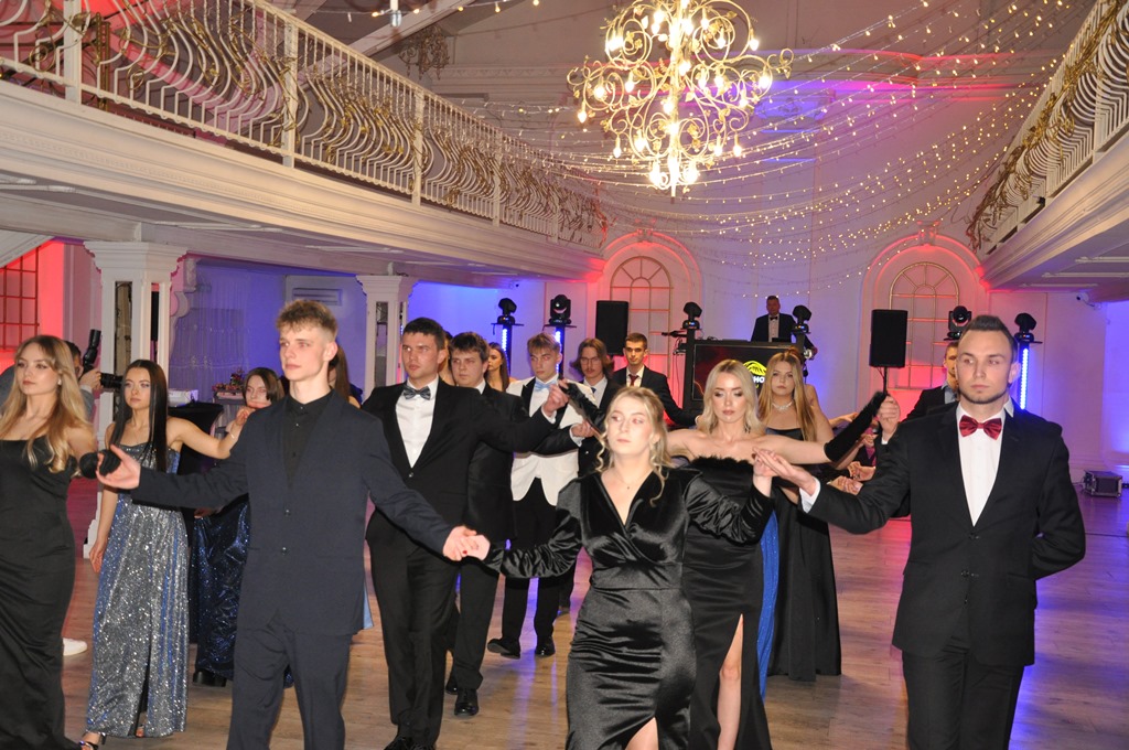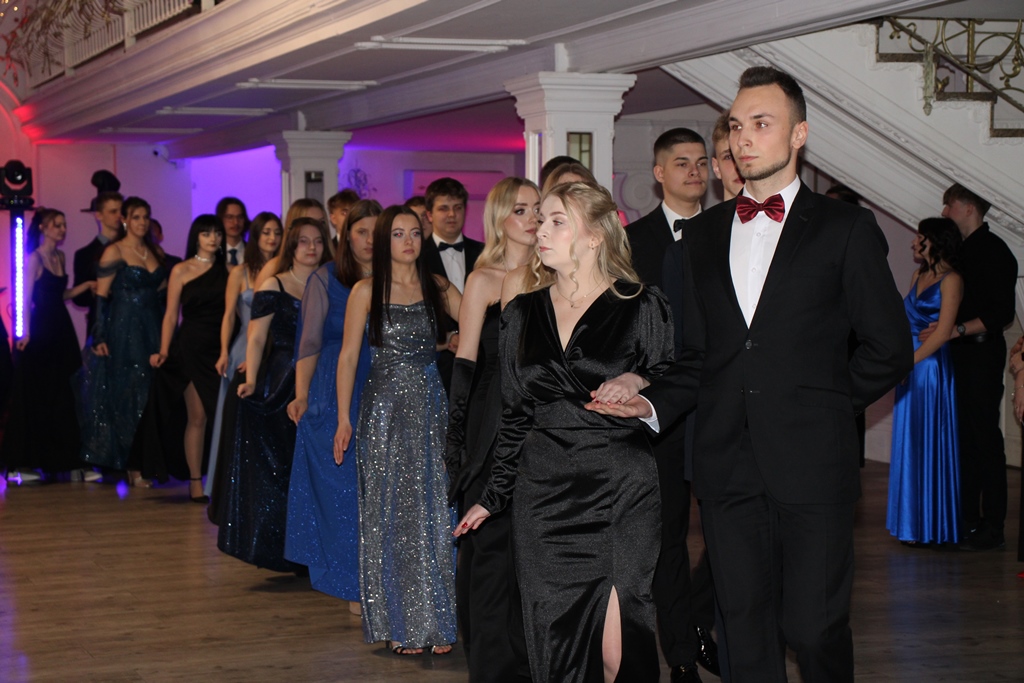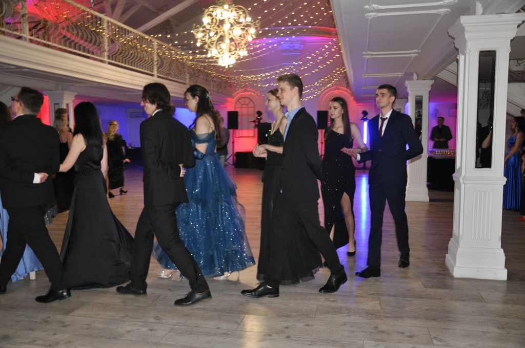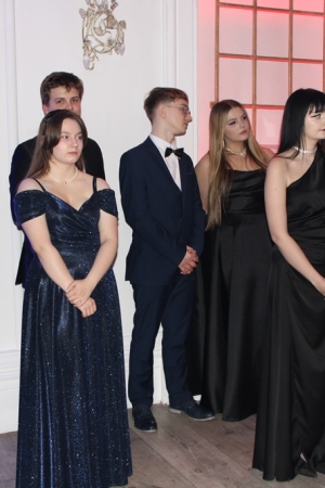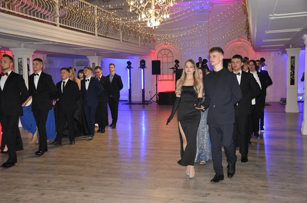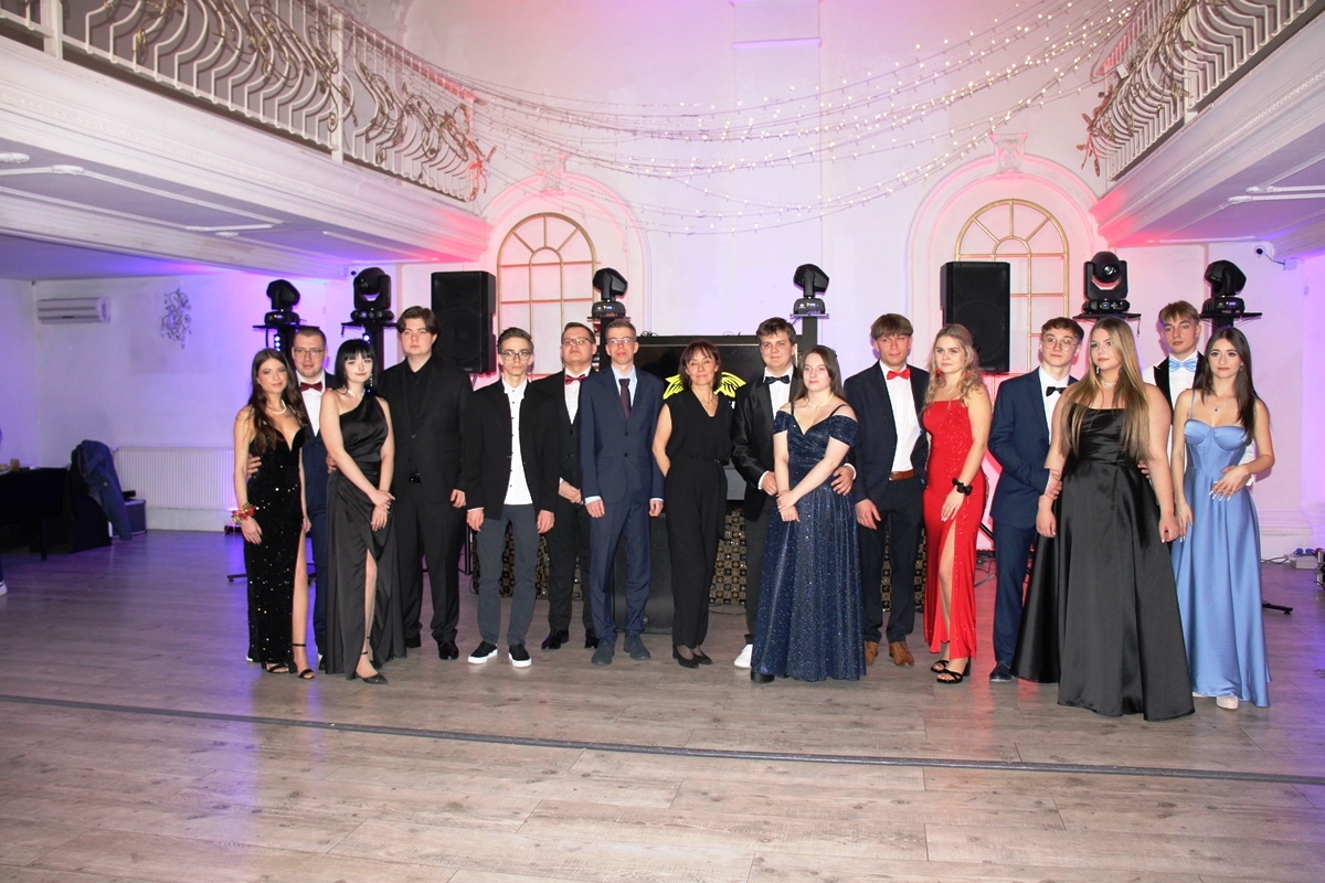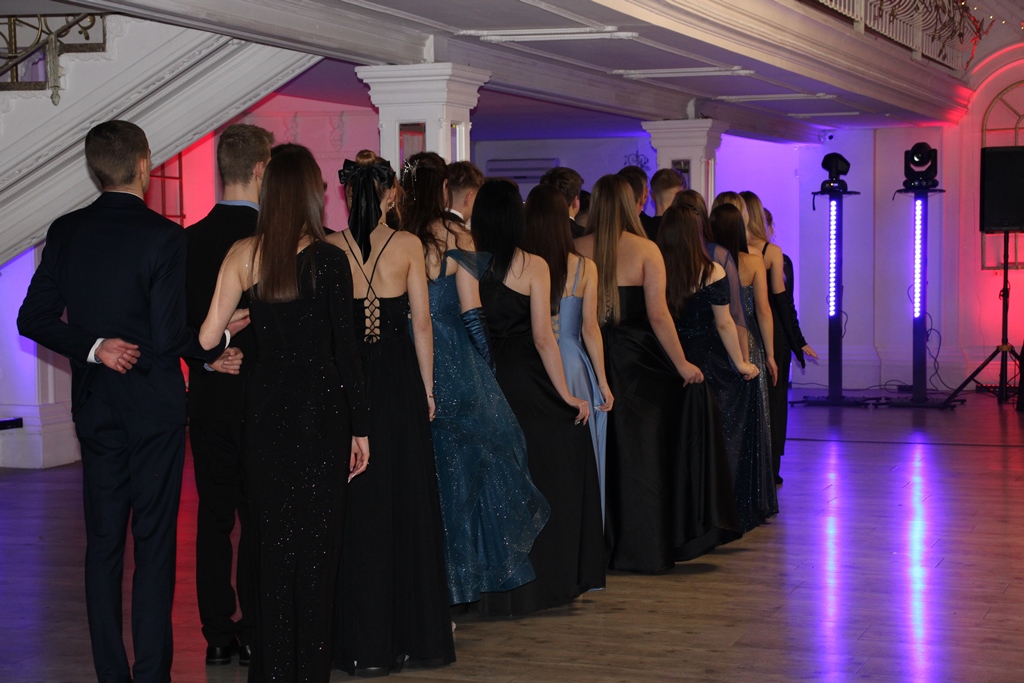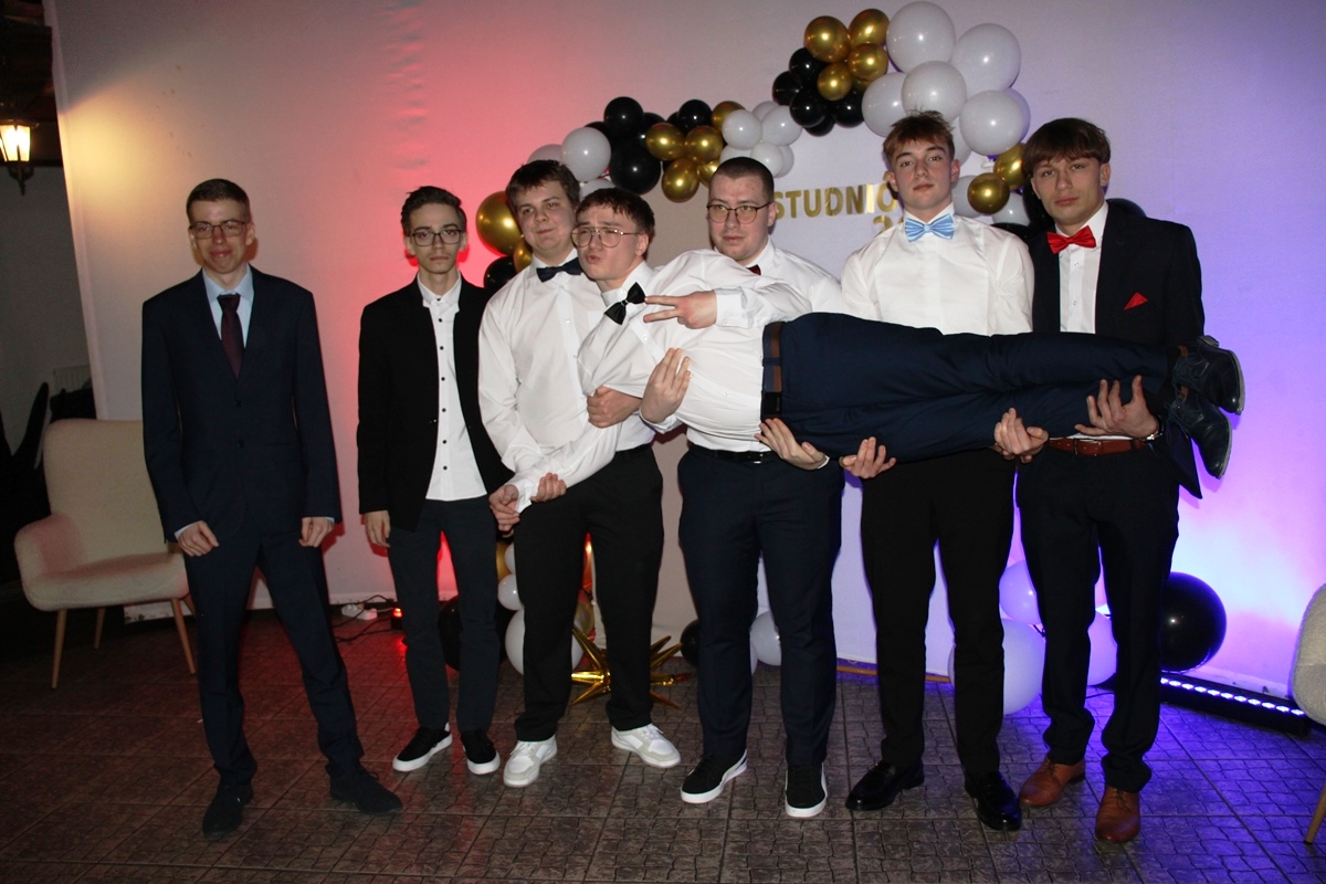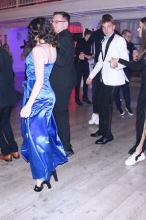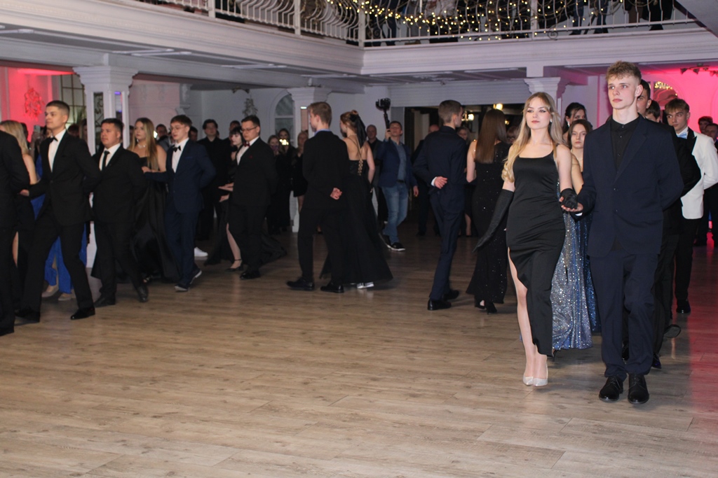 i Annę Pintal – kl. 5EE, którym podziękował za trud wychowawczy. W imieniu rodziców organizujących bal studniówkowy głos zabrała Pani Beata Kurek. Szczególnie miłym akcentem było wręczenie przez maturzystów kwiatów i przekazanie słów wdzięczności Panu Staroście, Panu Burmistrzowi, Dyrektorom Szkoły, nauczycielom, wychowawcom oraz rodzicom. Bal studniówkowy otworzył Pan Dyrektor, zapowiadając Poloneza, który przepięknie wykonali maturzyści pod czujnym okiem Pani Anny Wilk. Część oficjalna została uświetniona także przez wniesienie na salę pięknego tortu ze świecącymi fontannami. Uczniowie technikum zabrali także wszystkich w podróż sentymentalną w przeszłość ostatnich pięciu lat za pośrednictwem przygotowanej prezentacji. Zdjęcia i rodzące się przy tym wspomnienia pokazały, jak był to ważny okres w procesie wychowawczym i edukacyjnym młodzieży. Po części oficjalnej i smacznym obiedzie rozpoczęła się wspólna zabawa. Taneczna muzyka, smaczne potrawy i przekąski a przede wszystkim wspólna zabawa, rozmowy i czas mile spędzony w przyjemnym towarzystwie, pięknej sali na pewno będą długo wspominane przez maturzystów i zaproszonych gości. Szczególne podziękowania należą się organizatorom uroczystości – Rodzicom, którzy zadbali nie tylko o piękną salę, smaczne menu, ale przede wszystkim o sympatyczną atmosferę. Młodzieży należy podziękować za pierwszy zdany egzamin z kulturalnego i dojrzałego zachowania się na zabawie studniówkowej.