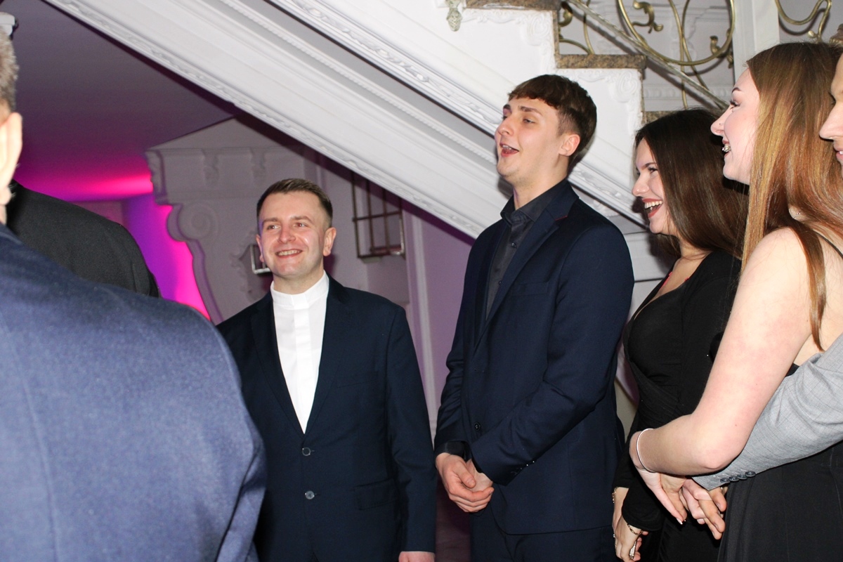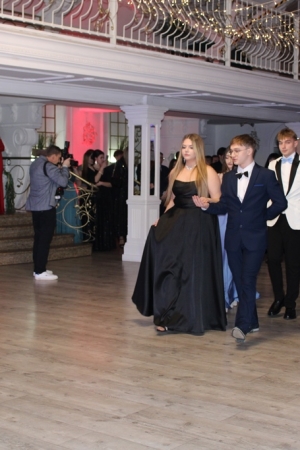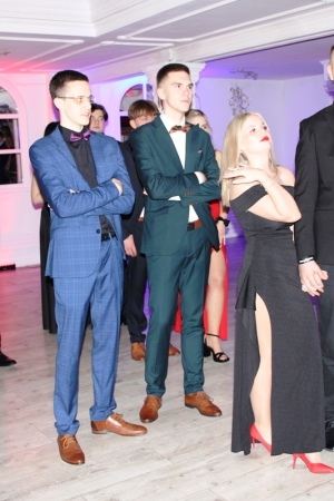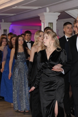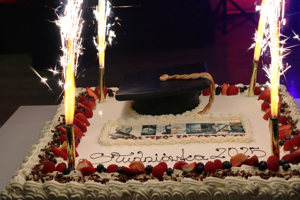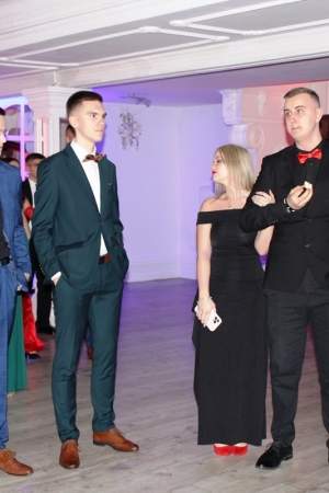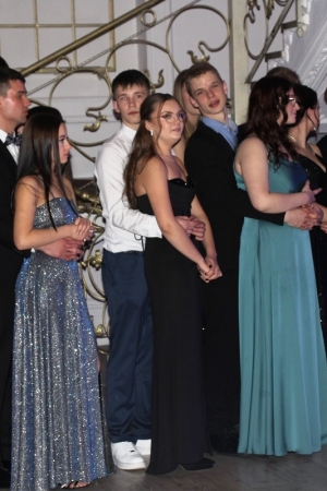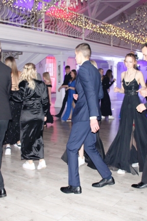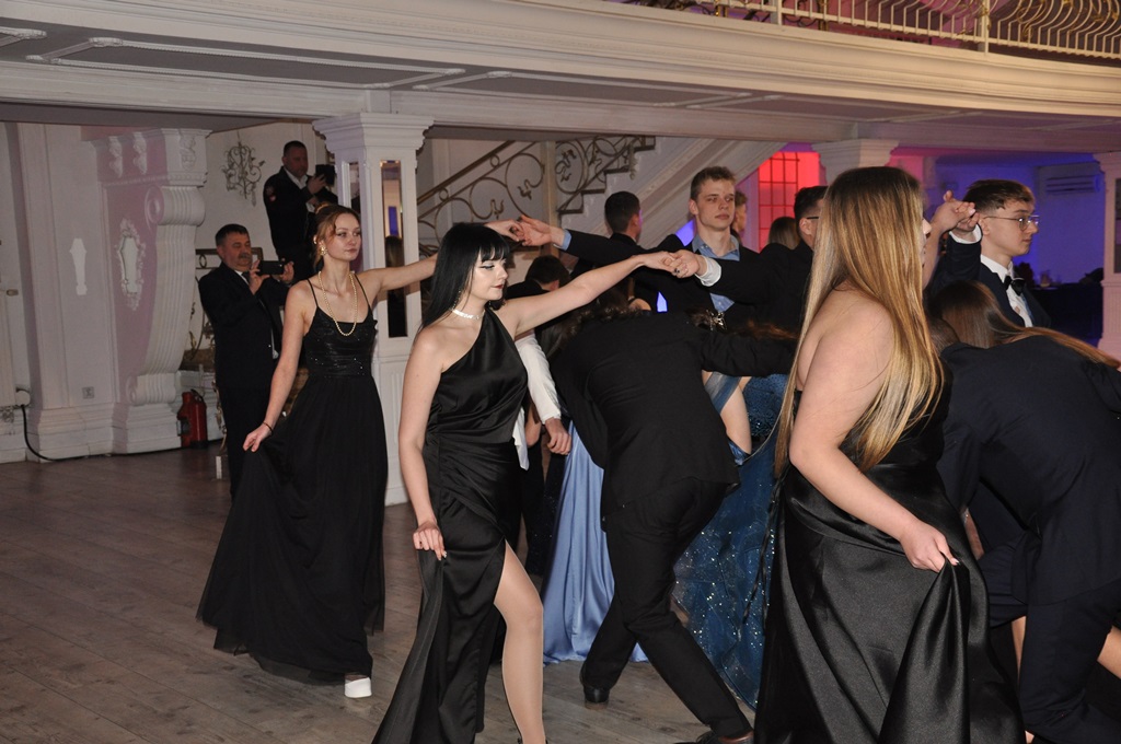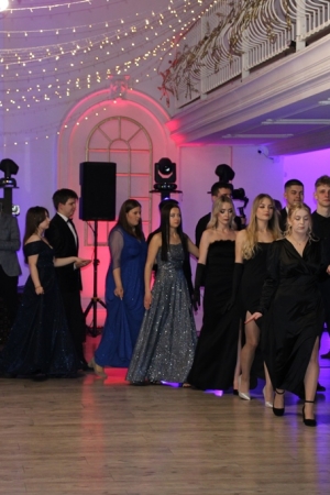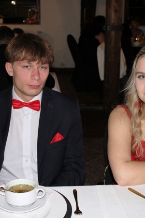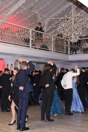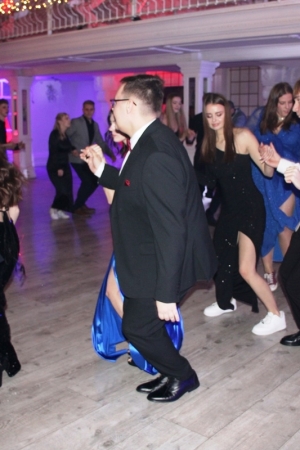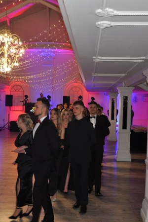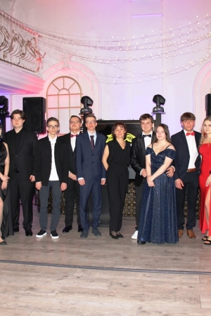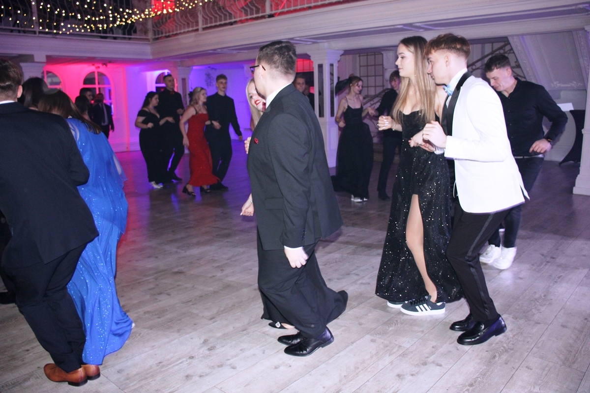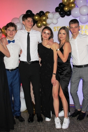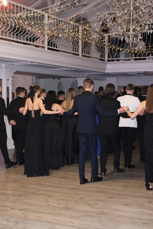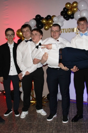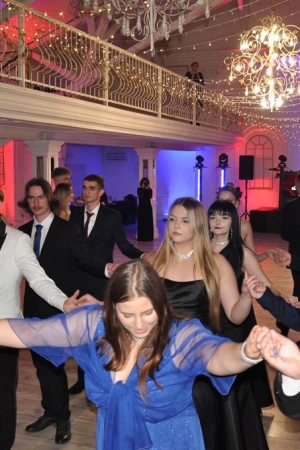 i Annę Pintal – kl. 5EE, którym podziękował za trud wychowawczy. W imieniu rodziców organizujących bal studniówkowy głos zabrała Pani Beata Kurek. Szczególnie miłym akcentem było wręczenie przez maturzystów kwiatów i przekazanie słów wdzięczności Panu Staroście, Panu Burmistrzowi, Dyrektorom Szkoły, nauczycielom, wychowawcom oraz rodzicom. Bal studniówkowy otworzył Pan Dyrektor, zapowiadając Poloneza, który przepięknie wykonali maturzyści pod czujnym okiem Pani Anny Wilk. Część oficjalna została uświetniona także przez wniesienie na salę pięknego tortu ze świecącymi fontannami. Uczniowie technikum zabrali także wszystkich w podróż sentymentalną w przeszłość ostatnich pięciu lat za pośrednictwem przygotowanej prezentacji. Zdjęcia i rodzące się przy tym wspomnienia pokazały, jak był to ważny okres w procesie wychowawczym i edukacyjnym młodzieży. Po części oficjalnej i smacznym obiedzie rozpoczęła się wspólna zabawa. Taneczna muzyka, smaczne potrawy i przekąski a przede wszystkim wspólna zabawa, rozmowy i czas mile spędzony w przyjemnym towarzystwie, pięknej sali na pewno będą długo wspominane przez maturzystów i zaproszonych gości. Szczególne podziękowania należą się organizatorom uroczystości – Rodzicom, którzy zadbali nie tylko o piękną salę, smaczne menu, ale przede wszystkim o sympatyczną atmosferę. Młodzieży należy podziękować za pierwszy zdany egzamin z kulturalnego i dojrzałego zachowania się na zabawie studniówkowej.