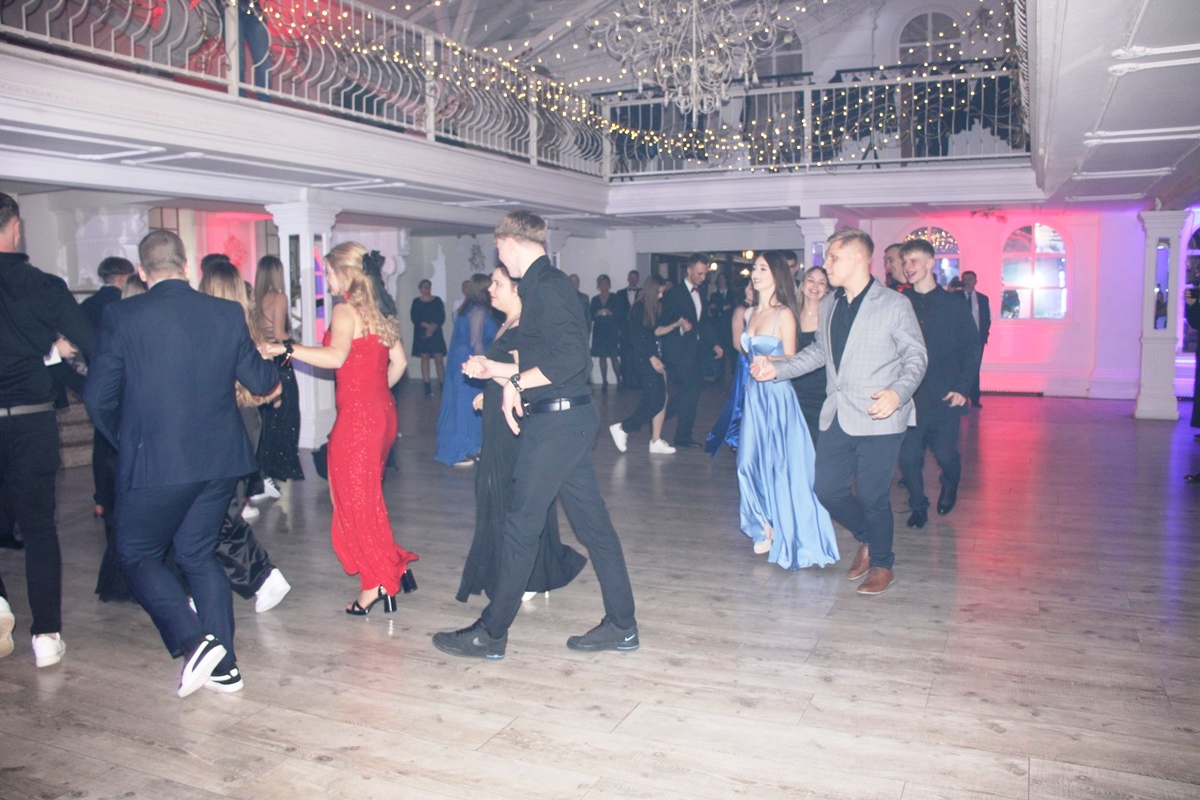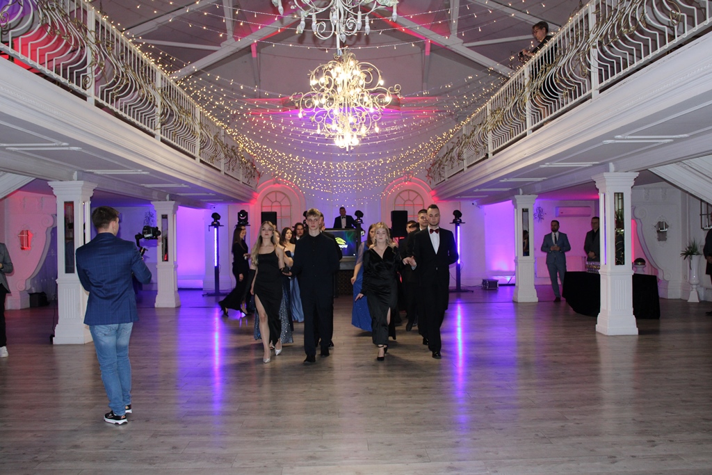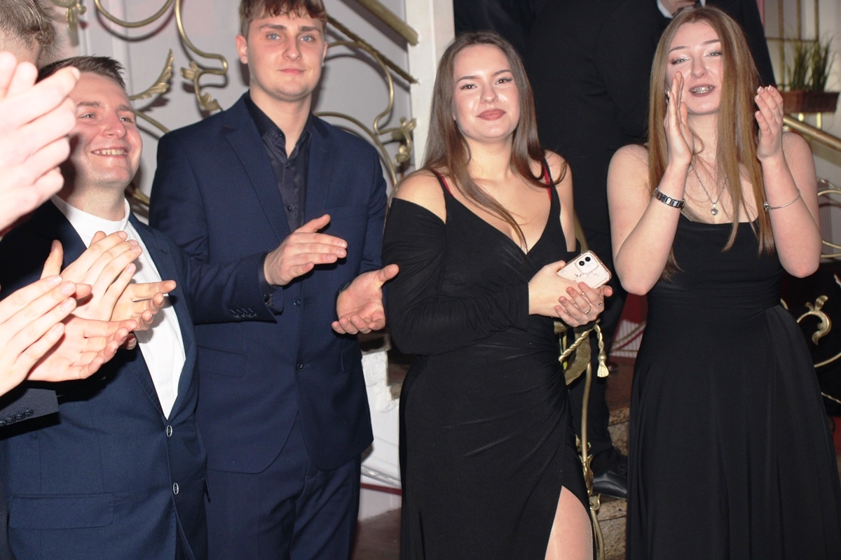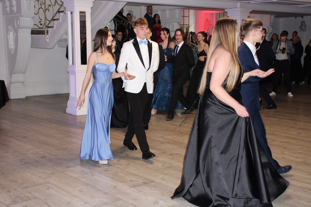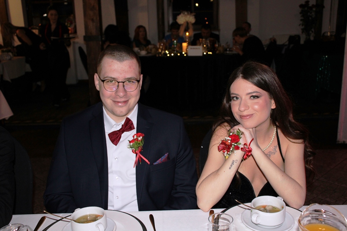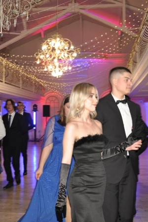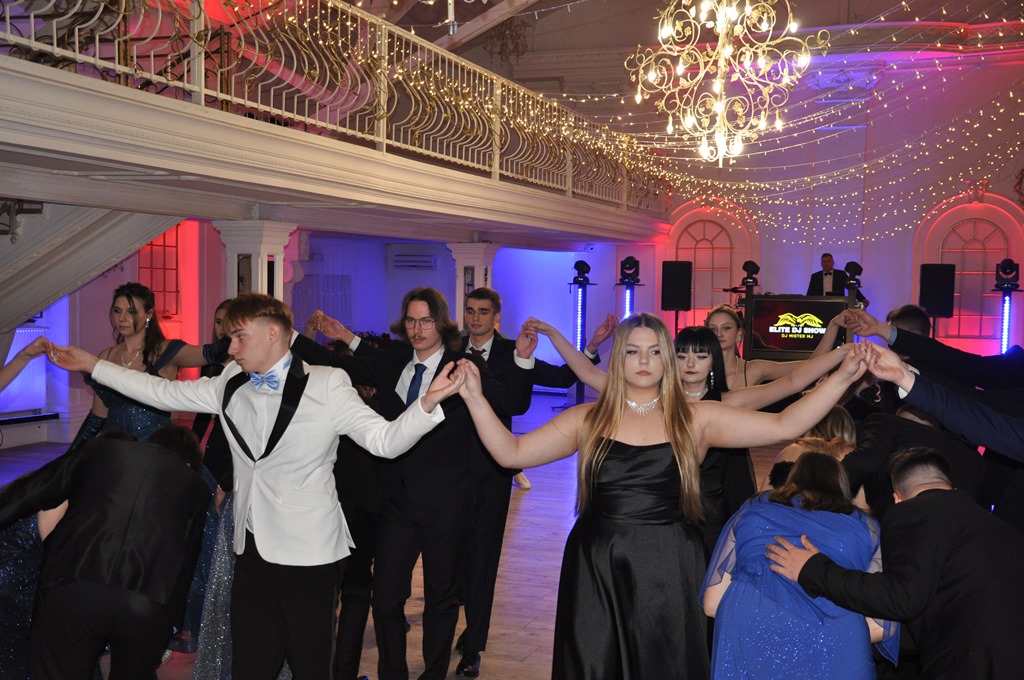 1 lutego 2025 r. o godzinie 18.00 w Hotelu Maria w Wałbrzychu rozpoczął się bal studniówkowy maturzystów Zespołu Szkół Zawodowych w Ząbkowicach Śl. Uroczystość swoją obecnością uświetnili zaproszeni goście w osobach: Zastępcy Burmistrza Ząbkowic Śląskich Pana Rafała Rabendy, Wicestarosty Ząbkowickiego Pana Dariusza Małozięcia, Dyrektora Szkoły Pana Ryszarda Pawłowskiego, Zastępców Dyrektora Pani Lucyny Gabory, Janusza Laboka oraz nauczyciele i wychowawcy klas maturalnych. Bal studniówkowy w imieniu maturzystów poprowadzili Wiktoria Grad z klasy 5CC i Jakub Gembara z klasy 5AA. Poproszeni o zabranie głosu Pan Starosta i Pan Burmistrz życzyli tegorocznym maturzystom wiary we własne możliwości, realizacji zaplanowanych celów i udanej zabawy studniówkowej. Pan Dyrektor Ryszard Pawłowski w swoim przemówieniu zwrócił uwagę na szybki upływ czasu, a zwłaszcza ostatnich pięciu lat edukacji i wychowania obecnych maturzystów w naszej szkole. Podkreślił, że studniówka jest czasem zabawy i radości, czego życzył wszystkim zebranym. Pan Dyrektor przywitał także Panią Beatę Zawadę jako reprezentantkę Rady Rodziców, rodziców jako organizatorów balu oraz wychowawców klas maturalnych: Panią Agnieszkę Kozakiewicz – klasa 5AA, Sylwię Harasymowicz – Lis kl. 5BB, Beatę Bereźnicką – kl. 5CC, Sylwię Siemasz – kl. 5DD