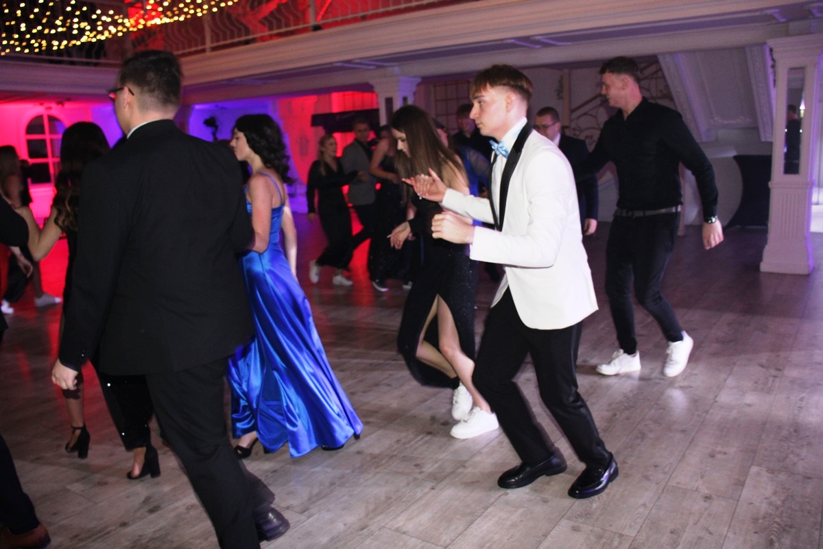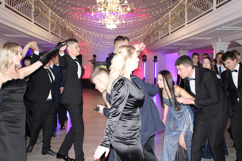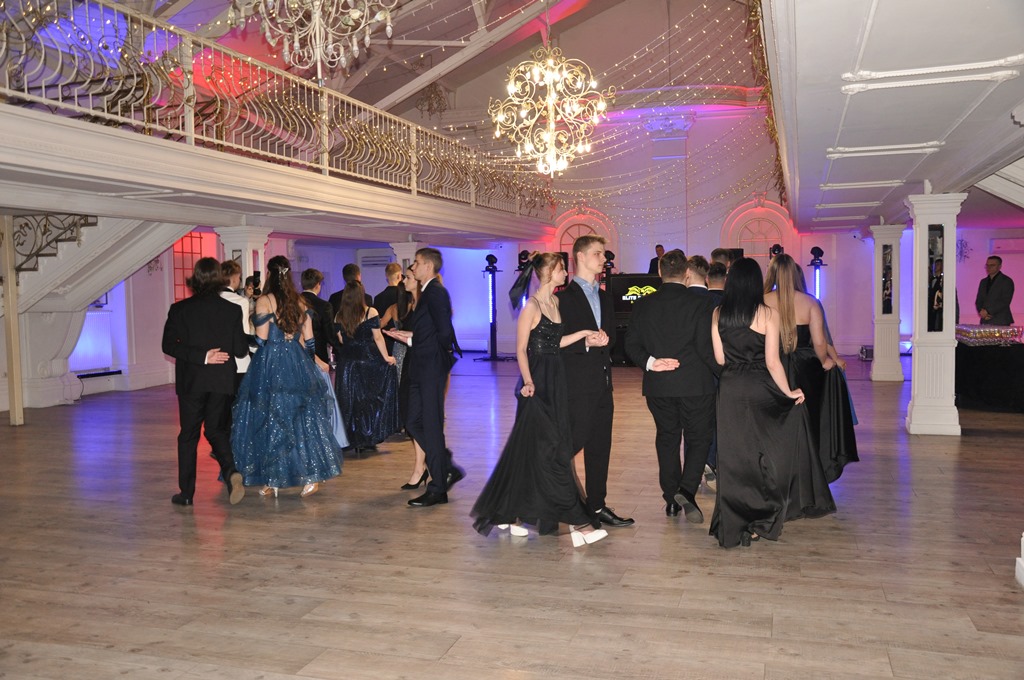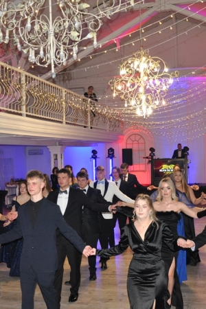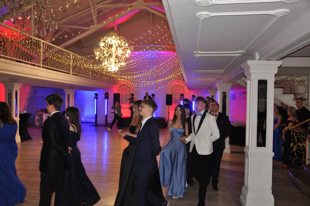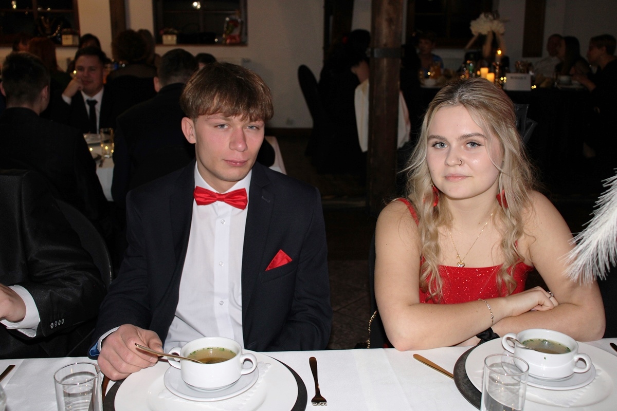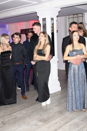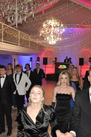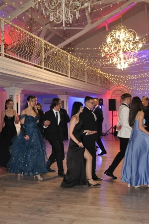 1 lutego 2025 r. o godzinie 18.00 w Hotelu Maria w Wałbrzychu rozpoczął się bal studniówkowy maturzystów Zespołu Szkół Zawodowych w Ząbkowicach Śl. Uroczystość swoją obecnością uświetnili zaproszeni goście w osobach: Zastępcy Burmistrza Ząbkowic Śląskich Pana Rafała Rabendy, Wicestarosty Ząbkowickiego Pana Dariusza Małozięcia, Dyrektora Szkoły Pana Ryszarda Pawłowskiego, Zastępców Dyrektora Pani Lucyny Gabory, Janusza Laboka oraz nauczyciele i wychowawcy klas maturalnych. Bal studniówkowy w imieniu maturzystów poprowadzili Wiktoria Grad z klasy 5CC i Jakub Gembara z klasy 5AA. Poproszeni o zabranie głosu Pan Starosta i Pan Burmistrz życzyli tegorocznym maturzystom wiary we własne możliwości, realizacji zaplanowanych celów i udanej zabawy studniówkowej. Pan Dyrektor Ryszard Pawłowski w swoim przemówieniu zwrócił uwagę na szybki upływ czasu, a zwłaszcza ostatnich pięciu lat edukacji i wychowania obecnych maturzystów w naszej szkole. Podkreślił, że studniówka jest czasem zabawy i radości, czego życzył wszystkim zebranym. Pan Dyrektor przywitał także Panią Beatę Zawadę jako reprezentantkę Rady Rodziców, rodziców jako organizatorów balu oraz wychowawców klas maturalnych: Panią Agnieszkę Kozakiewicz – klasa 5AA, Sylwię Harasymowicz – Lis kl. 5BB, Beatę Bereźnicką – kl. 5CC, Sylwię Siemasz – kl. 5DD