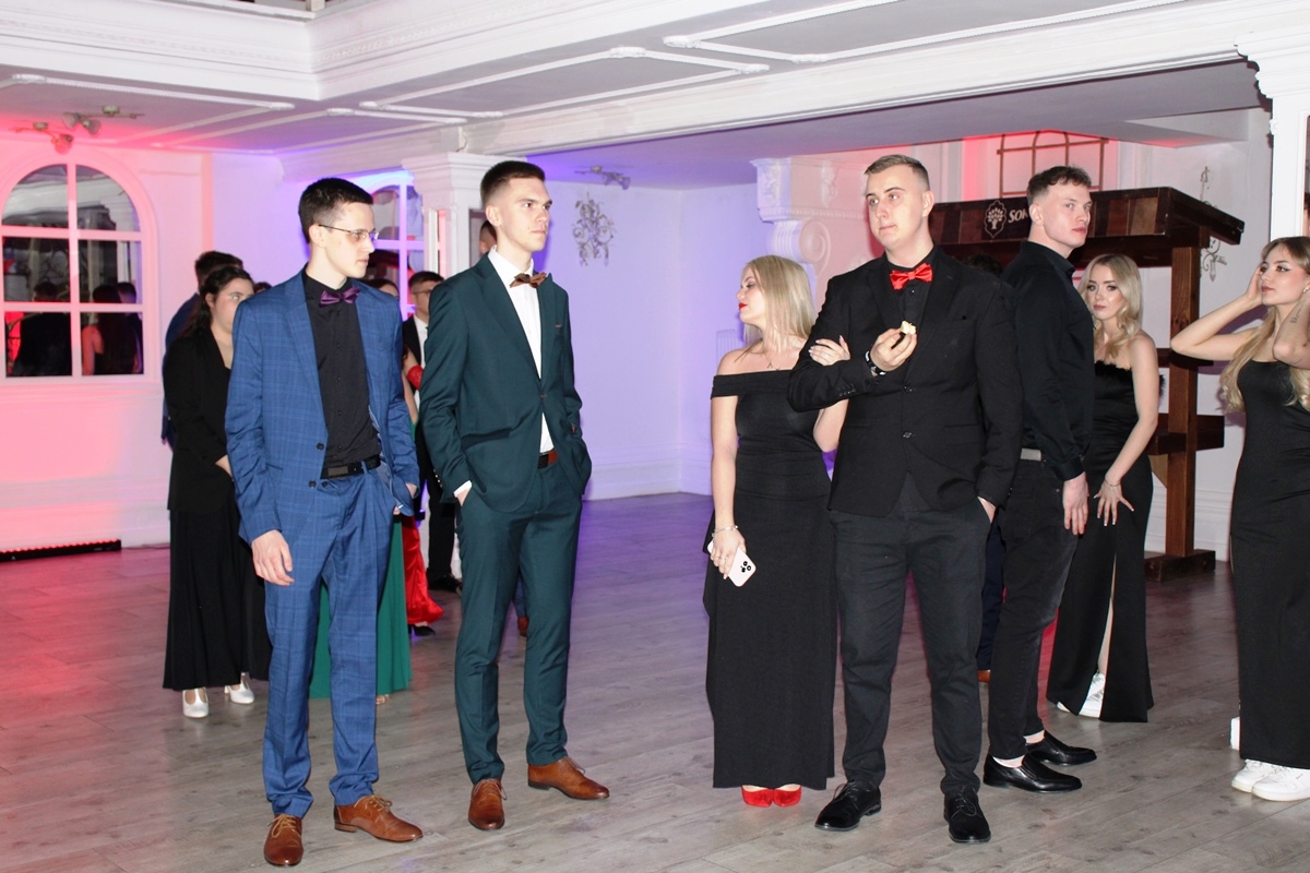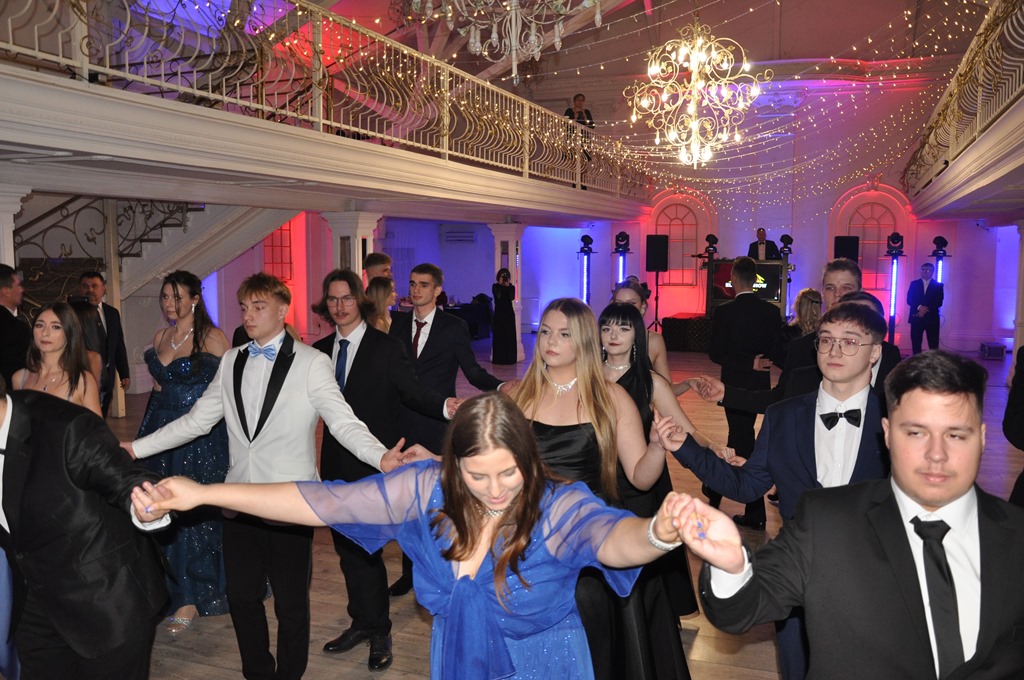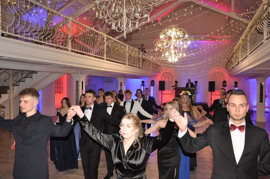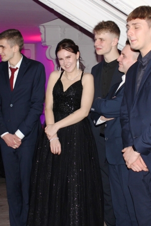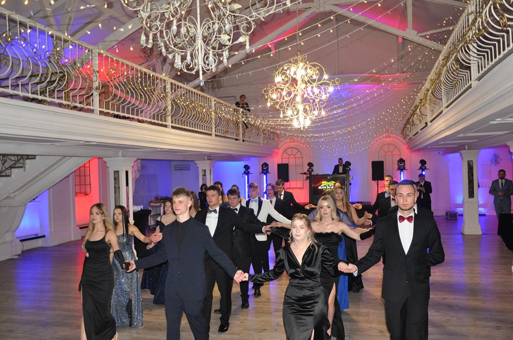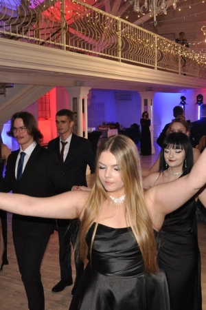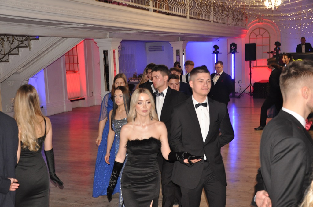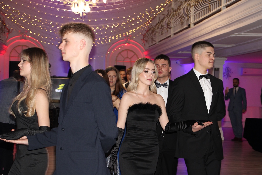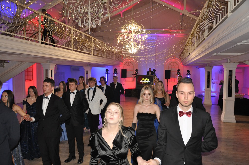 1 lutego 2025 r. o godzinie 18.00 w Hotelu Maria w Wałbrzychu rozpoczął się bal studniówkowy maturzystów Zespołu Szkół Zawodowych w Ząbkowicach Śl. Uroczystość swoją obecnością uświetnili zaproszeni goście w osobach: Zastępcy Burmistrza Ząbkowic Śląskich Pana Rafała Rabendy, Wicestarosty Ząbkowickiego Pana Dariusza Małozięcia, Dyrektora Szkoły Pana Ryszarda Pawłowskiego, Zastępców Dyrektora Pani Lucyny Gabory, Janusza Laboka oraz nauczyciele i wychowawcy klas maturalnych. Bal studniówkowy w imieniu maturzystów poprowadzili Wiktoria Grad z klasy 5CC i Jakub Gembara z klasy 5AA. Poproszeni o zabranie głosu Pan Starosta i Pan Burmistrz życzyli tegorocznym maturzystom wiary we własne możliwości, realizacji zaplanowanych celów i udanej zabawy studniówkowej. Pan Dyrektor Ryszard Pawłowski w swoim przemówieniu zwrócił uwagę na szybki upływ czasu, a zwłaszcza ostatnich pięciu lat edukacji i wychowania obecnych maturzystów w naszej szkole. Podkreślił, że studniówka jest czasem zabawy i radości, czego życzył wszystkim zebranym. Pan Dyrektor przywitał także Panią Beatę Zawadę jako reprezentantkę Rady Rodziców, rodziców jako organizatorów balu oraz wychowawców klas maturalnych: Panią Agnieszkę Kozakiewicz – klasa 5AA, Sylwię Harasymowicz – Lis kl. 5BB, Beatę Bereźnicką – kl. 5CC, Sylwię Siemasz – kl. 5DD