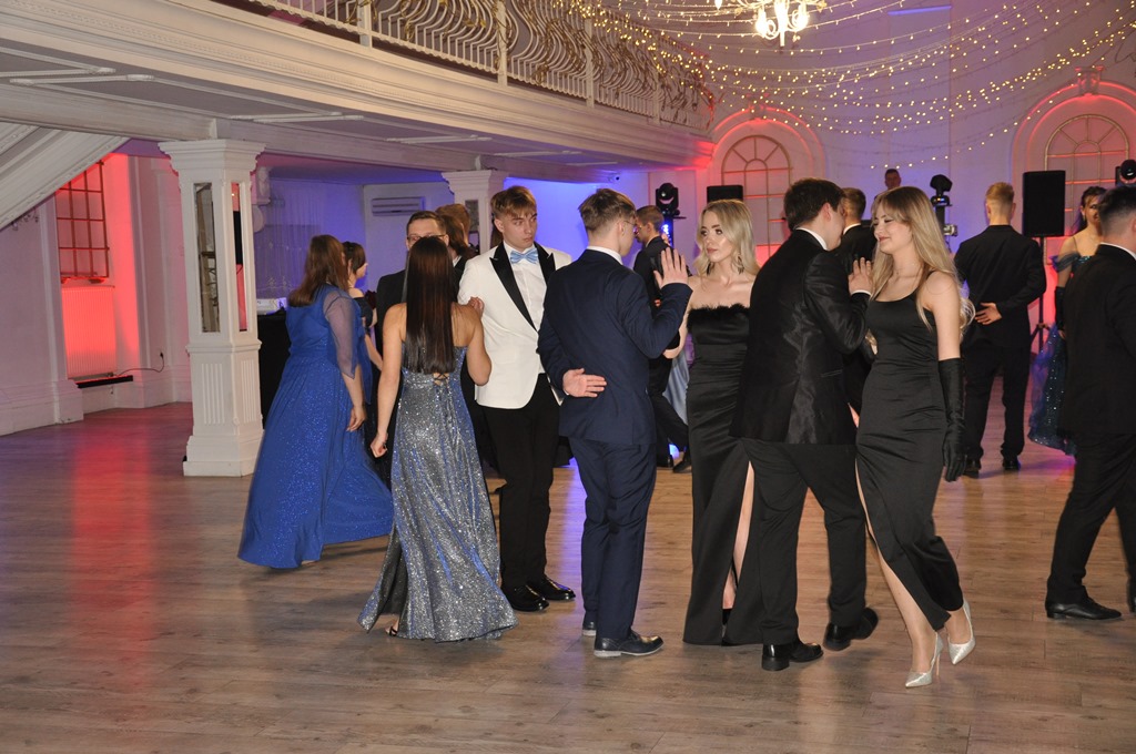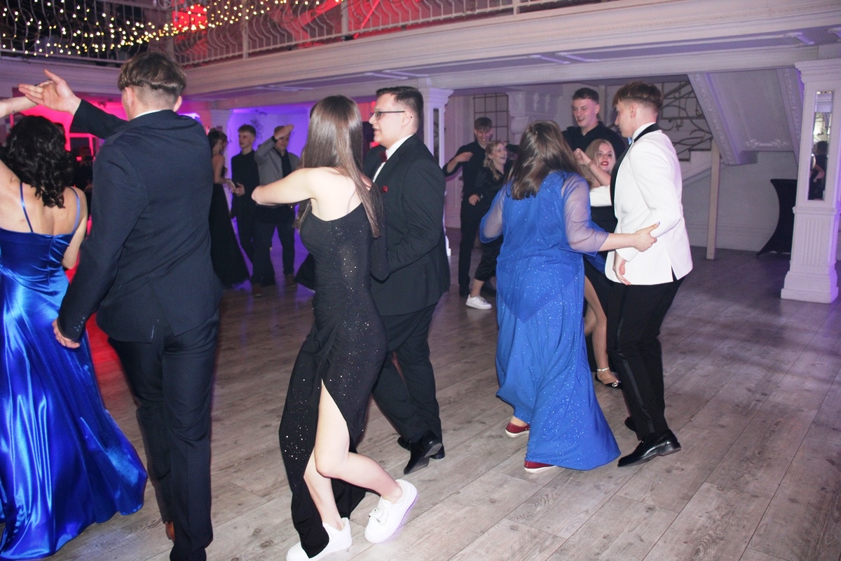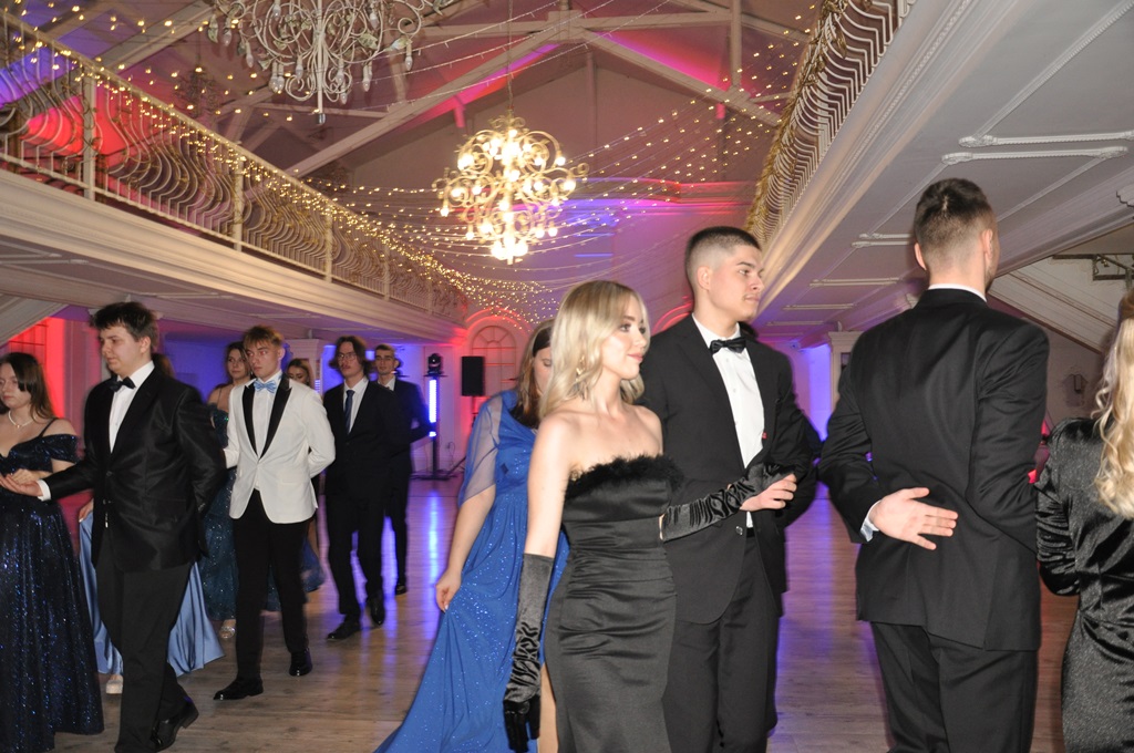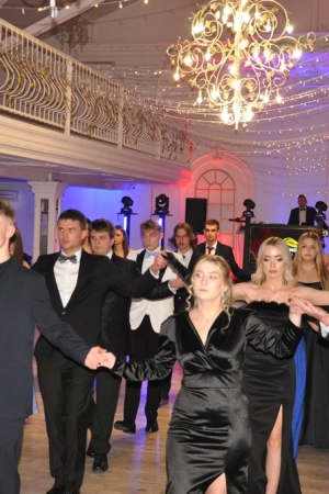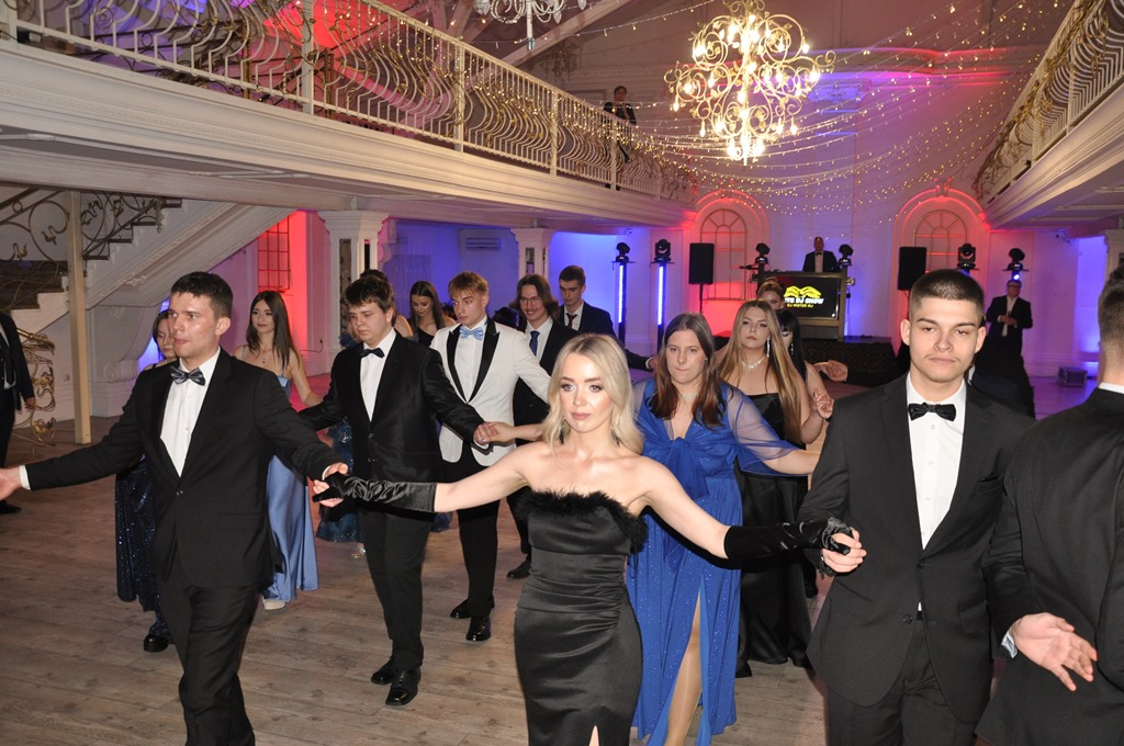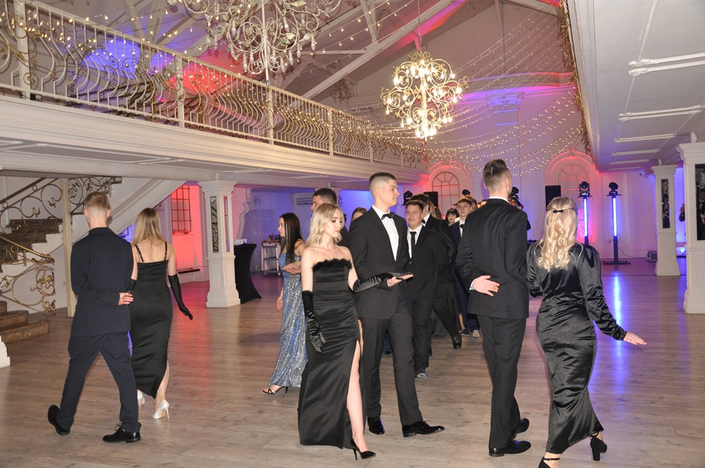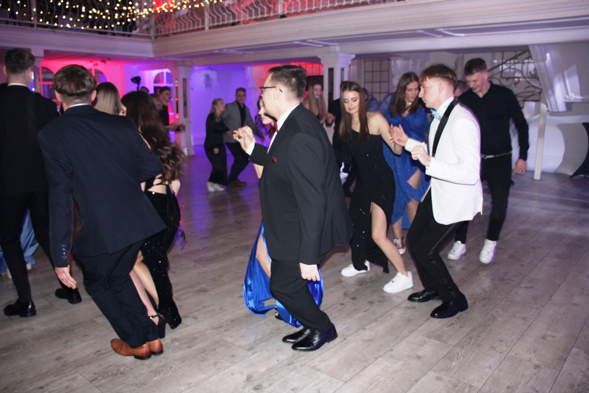 1 lutego 2025 r. o godzinie 18.00 w Hotelu Maria w Wałbrzychu rozpoczął się bal studniówkowy maturzystów Zespołu Szkół Zawodowych w Ząbkowicach Śl. Uroczystość swoją obecnością uświetnili zaproszeni goście w osobach: Zastępcy Burmistrza Ząbkowic Śląskich Pana Rafała Rabendy, Wicestarosty Ząbkowickiego Pana Dariusza Małozięcia, Dyrektora Szkoły Pana Ryszarda Pawłowskiego, Zastępców Dyrektora Pani Lucyny Gabory, Janusza Laboka oraz nauczyciele i wychowawcy klas maturalnych. Bal studniówkowy w imieniu maturzystów poprowadzili Wiktoria Grad z klasy 5CC i Jakub Gembara z klasy 5AA. Poproszeni o zabranie głosu Pan Starosta i Pan Burmistrz życzyli tegorocznym maturzystom wiary we własne możliwości, realizacji zaplanowanych celów i udanej zabawy studniówkowej. Pan Dyrektor Ryszard Pawłowski w swoim przemówieniu zwrócił uwagę na szybki upływ czasu, a zwłaszcza ostatnich pięciu lat edukacji i wychowania obecnych maturzystów w naszej szkole. Podkreślił, że studniówka jest czasem zabawy i radości, czego życzył wszystkim zebranym. Pan Dyrektor przywitał także Panią Beatę Zawadę jako reprezentantkę Rady Rodziców, rodziców jako organizatorów balu oraz wychowawców klas maturalnych: Panią Agnieszkę Kozakiewicz – klasa 5AA, Sylwię Harasymowicz – Lis kl. 5BB, Beatę Bereźnicką – kl. 5CC, Sylwię Siemasz – kl. 5DD