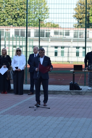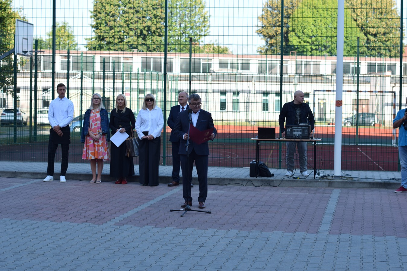 Na uroczystości rozpoczęcia roku szkolnego 2025/26 w Zespole Szkół Zawodowych im. Stanisława Staszica w Ząbkowicach witam grono pedagogiczne, pracowników administracji i obsługi, rodziców a najcieplej młodzież naszej szkoły szczególnie uczniów i uczennice klas pierwszych, którzy swoją dalszą edukację będą realizować w szkole na wrocławskiej. Spotykamy się na rozpoczęciu nowego roku szkolnego. Wakacje dobiegły końca, czas więc wrócić do pracy i nauki. Pamiętajmy jednak, że i jedno, i drugie może być źródłem satysfakcji i radości. To dlatego mam nadzieję, że choć przed nami wiele wyzwań, uda nam się przeżyć wiele wspólnych wartościowych chwil. Szkoła to nie tylko miejsce przekazywania wiedzy, umiejętności i nauki, ale również zdobywania wielu cennych doświadczeń. Wszyscy uczymy się tu współpracować, rozwiązywać problemy, wspierać się nawzajem i szanować. A ponieważ to bardzo ważne elementy ludzkiego życia, wspólnie musimy zadbać, by szkoła była miejscem bezpiecznym, życzliwym i otwartym.