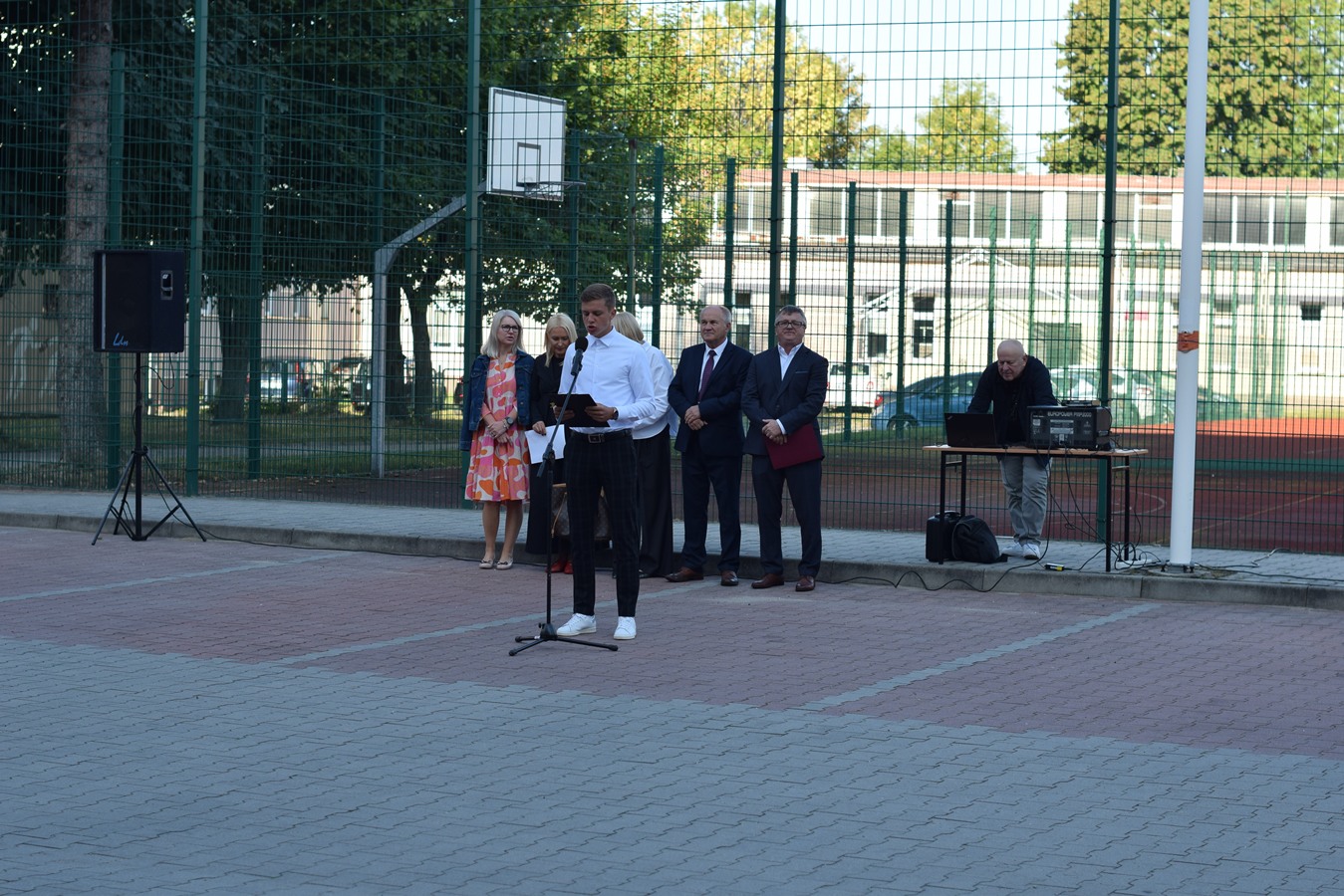 Niech szkoła stanie się dla Was miejscem intelektualnej przygody, miejscem przyjaznym i bezpiecznym. Zdobywanie i poszerzanie wiedzy, odkrywanie nauki i jej praw, odnajdywanie samego siebie w nowych okolicznościach czy rozwój własnych uzdolnień i umiejętności to fascynująca wycieczka w nieznane. Szkoła powinna realizować program dydaktyczny rozumiany jako przekazywanie młodzieży zarówno wiedzy szczegółowej, jak i wzorców postaw, powinna bowiem uczyć i wychowywać. Aby cele te mogły być spełnione, proces dydaktyczny powinien przebiegać w warunkach dyscypliny i wzajemnego szacunku między pedagogami i uczniami. Tylko w warunkach ścisłego przestrzegania szkolnych standardów można realizować ambitne plany edukacyjne. Zakładają one personalizację nauczania, czyli odkrywanie w każdym uczniu jego indywidualnego potencjału i talentów. Chciałabym aby najważniejszym zadaniem dla Was było osiągnięcie jak najlepszych wyników w nauce uwieńczone pozytywnym egzaminem maturalnym i zawodowym, osiąganie sukcesów w konkursach, godne reprezentowanie szkoły w każdym miejscu oraz rozwijanie zainteresowań i zdolności, które przecież każdy z was posiada. Najlepszym tego dowodem są osiągane przez nasz powiat wyniki z egzaminu maturalnego, gdzie przez ostatnie dwa lata Powiat Ząbkowicki był najlepszy na Dolnym Śląsku a nasza szkoła jest ważnym elementem tej struktury. Musicie pamiętać, że uczniami jesteście nie tylko w szkole ale też kiedy przebywacie na boisku, na wycieczce, czy na zabawie i obowiązują Was zawsze takie same normy zachowania. Rozpoczęcie roku szkolnego jest odpowiednią okazją, aby docenić ciężką pracę nauczycieli. To nauczyciele przekazują wiedzę i formują kolejne pokolenia, które w przyszłości przejmą odpowiedzialność za Ojczyznę.